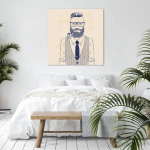 Impression sur toile - Image sur toile - Homme stylisé avec une barbe, une pipe et des lunettes - 120x80cm - Gai, masculin et à la mode - Décoration murale moderne pour le salon et la chambre ARTTOR