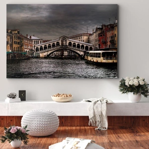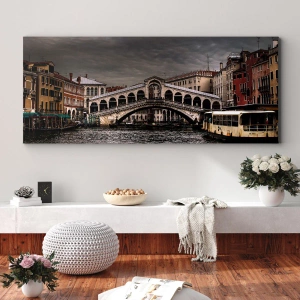 Impression sur toile - Image sur toile - Pont du Rialto à Venise sur le Grand Canal, architecture classique. - 80x120cm - Promesse d'une soirée vénitienne - Décoration murale moderne pour le salon et la chambre ARTTOR