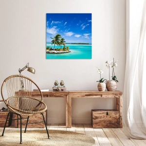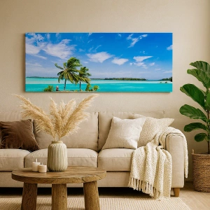 Impression sur toile - Image sur toile - Une île exotique avec des palmiers sur des eaux turquoises - 50x70cm - Paradis sur Terre - Décoration murale moderne pour le salon et la chambre ARTTOR