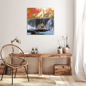 Impression sur toile - Image sur toile - Tigres près d'une cascade dans la forêt d'automne - 50x70cm - Paysage surréaliste - Décoration murale moderne pour le salon et la chambre ARTTOR