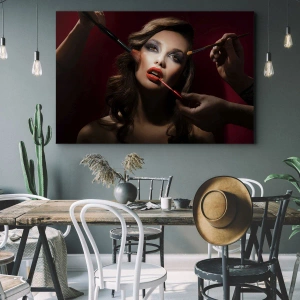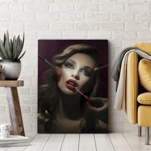 Impression sur toile - Image sur toile - Portrait élégant d'une femme se maquillant sur un fond sombre - 70x100cm - Belle rêveuse - Décoration murale moderne pour le salon et la chambre ARTTOR