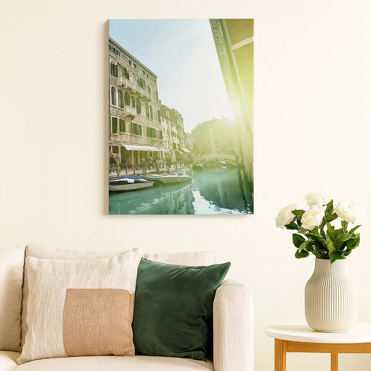 Impression sur toile - Image sur toile - Pont et canal de Venise avec une architecture historique - 50x70cm - Venise - Amore Moi - Décoration murale moderne pour le salon et la chambre ARTTOR