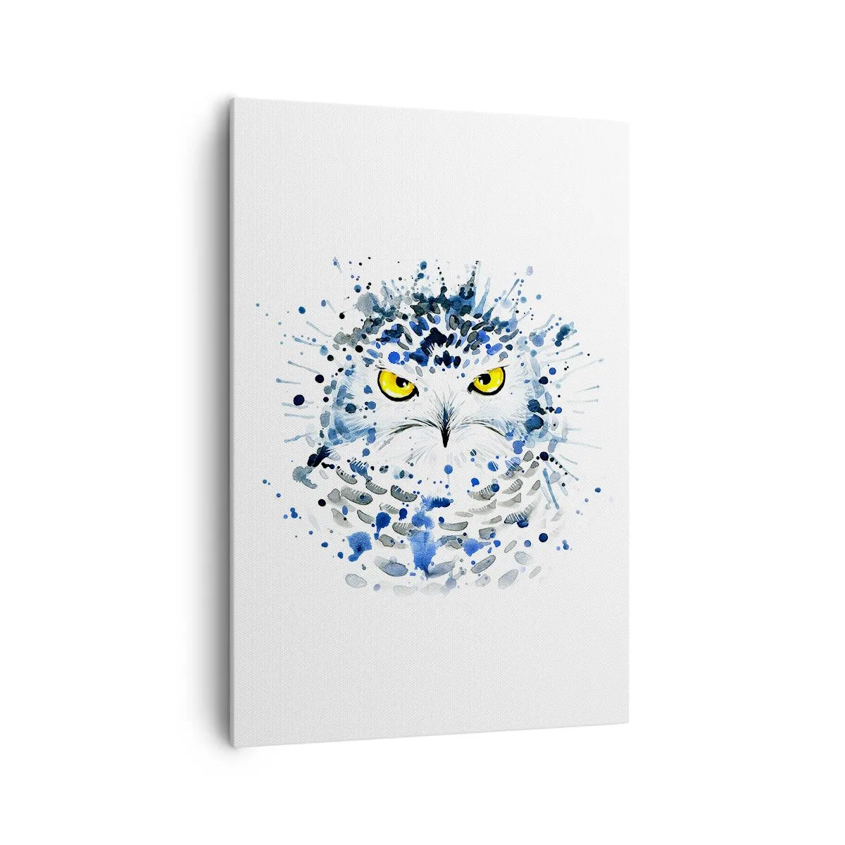 Impression sur toile - Image sur toile - Portrait abstrait d'un hibou aux couleurs bleu et jaune - 70x100cm - Droit dans les yeux - Décoration murale moderne pour le salon et la chambre ARTTOR