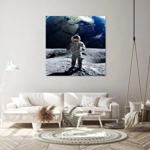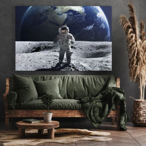 Impression sur toile - Image sur toile - Astronaute à la surface de la Lune avec la Terre en arrière-plan - 50x70cm - Salutations de la lune - Décoration murale moderne pour le salon et la chambre ARTTOR