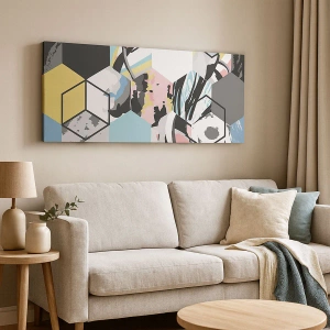 Impression sur toile - Image sur toile - Motif hexagonal géométrique avec des détails abstraits colorés - 140x50cm - Hexagones et cubes en six couleurs - Décoration murale moderne pour le salon et la chambre ARTTOR