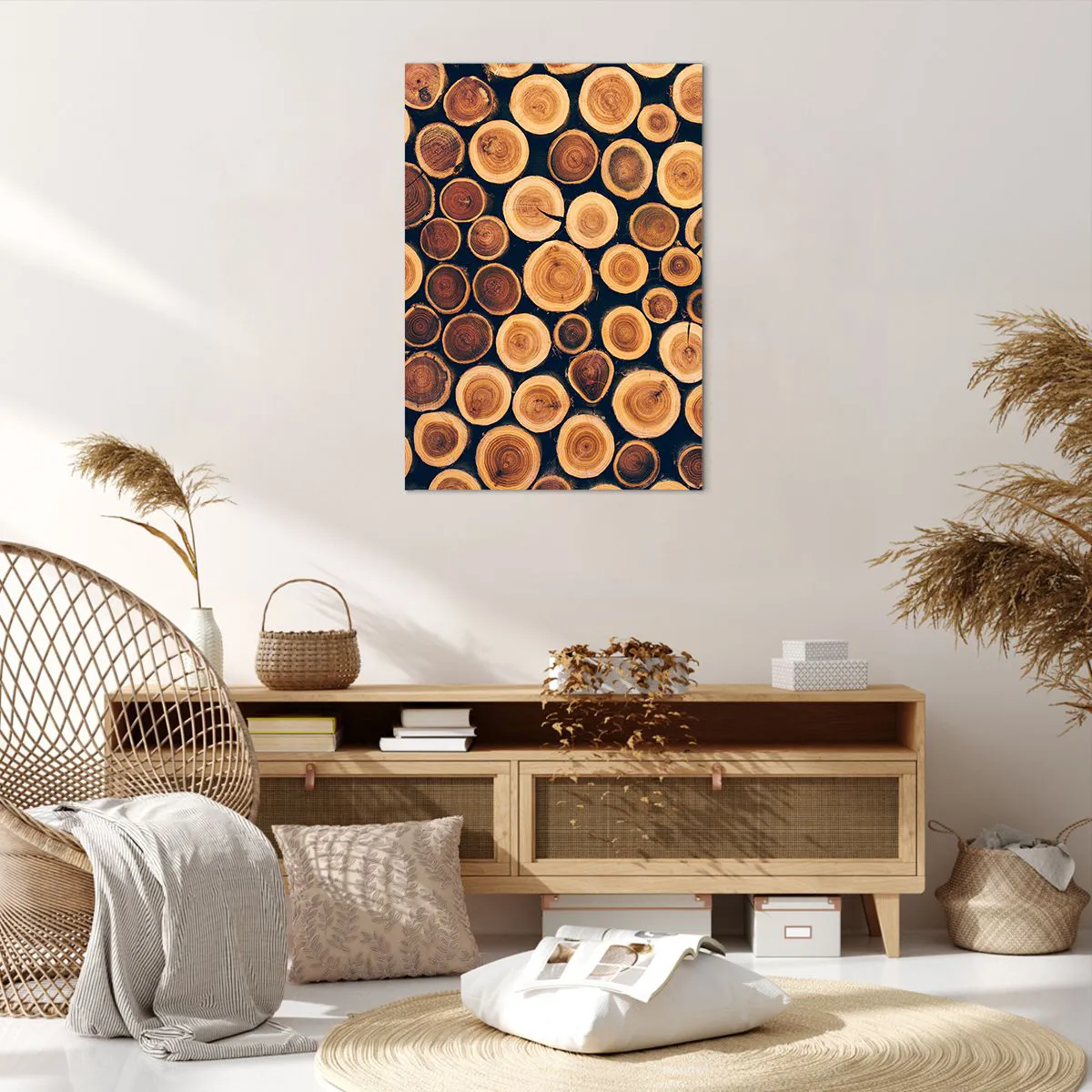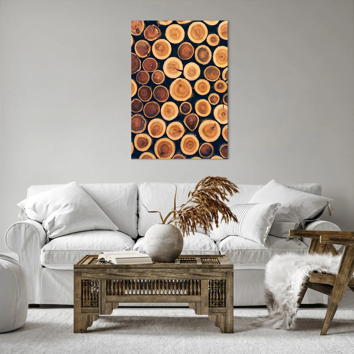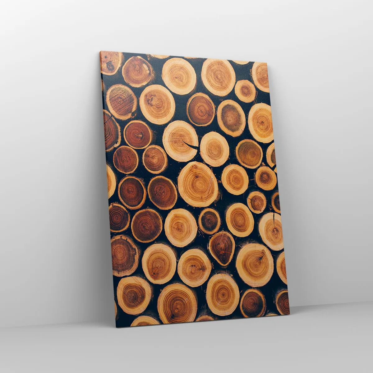 Impression sur toile - Image sur toile - Modèle réalisé à partir de sections transversales de bûches de bois - 70x100cm - Quel âge je semble avoir ? - Décoration murale moderne pour le salon et la chambre ARTTOR