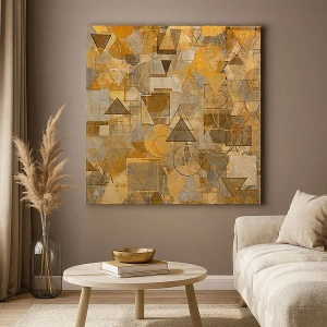 Impression sur toile - Image sur toile - Motifs géométriques abstraits dans des tons dorés - 50x70cm - Le monde en forme - Décoration murale moderne pour le salon et la chambre ARTTOR