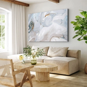 Impression sur toile - Image sur toile - Vagues abstraites dans des tons de bleu et de blanc - 50x70cm - Blanc surélevé - Décoration murale moderne pour le salon et la chambre ARTTOR