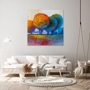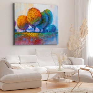 Impression sur toile - Image sur toile - Arbres colorés dans un paysage impressionniste - 80x120cm - Un bouquet de couleurs éclatantes - Décoration murale moderne pour le salon et la chambre ARTTOR