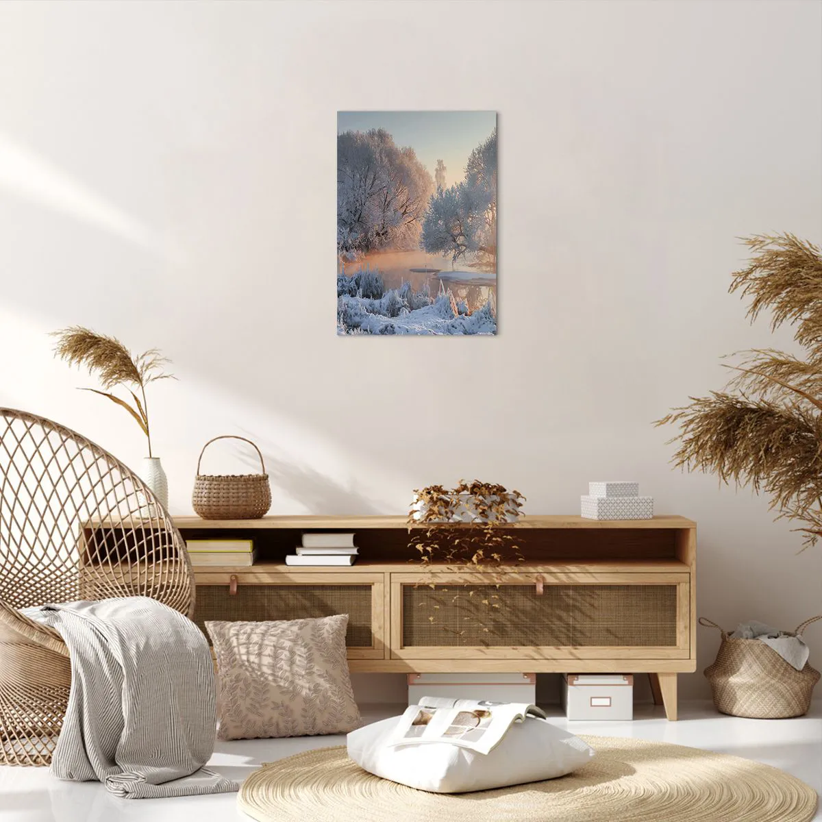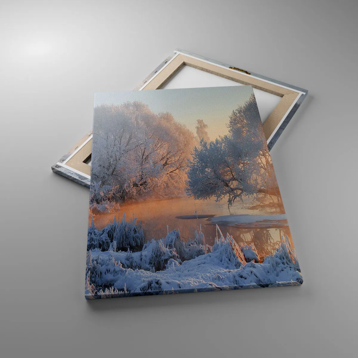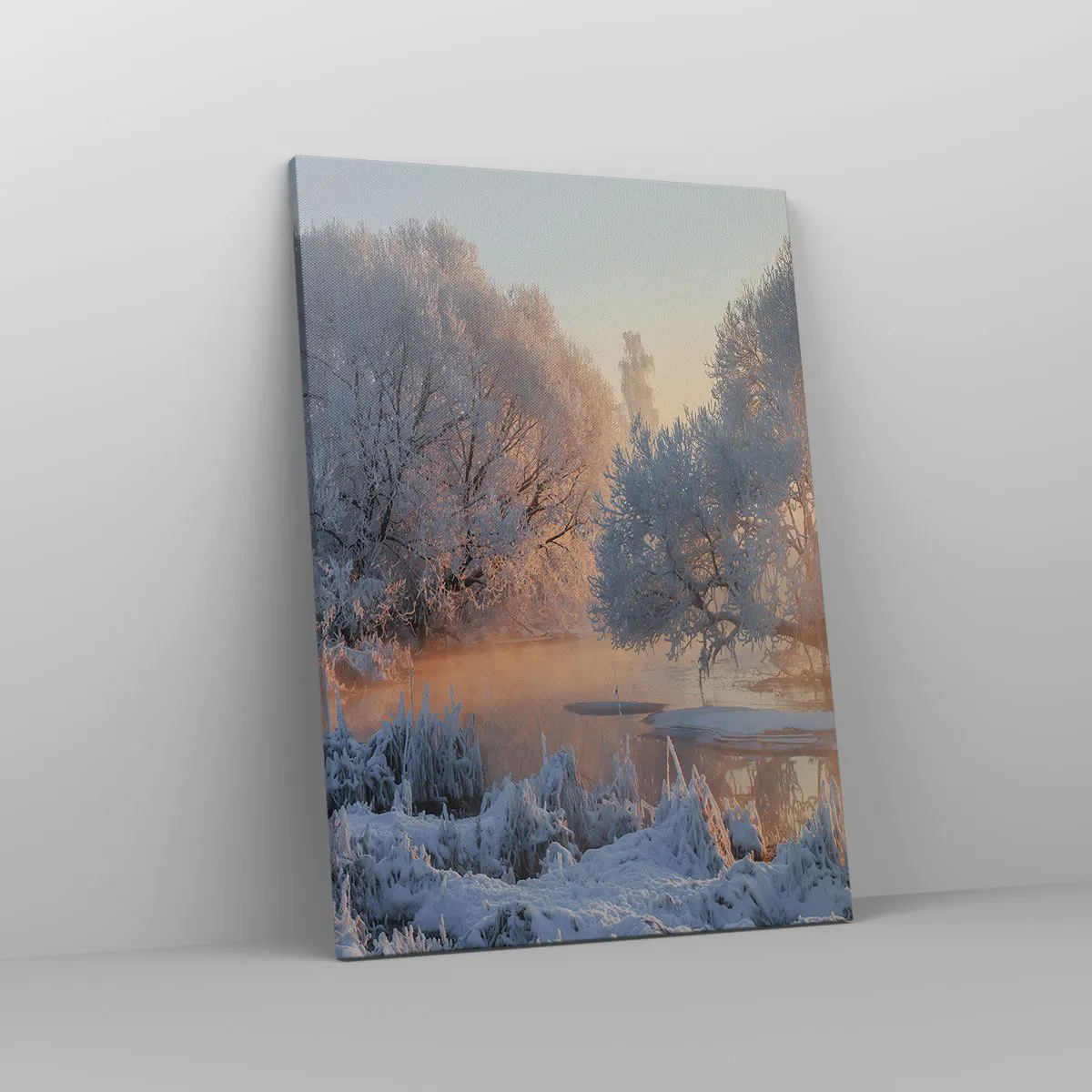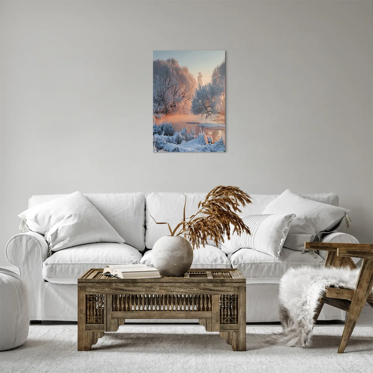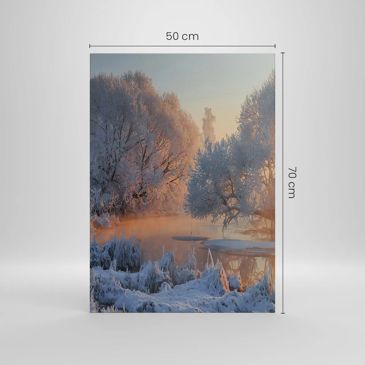 Impression sur toile - Image sur toile - Paysage d'hiver avec des arbres enneigés et un coucher de soleil - 50x70cm - Tout dans le soleil brille en cristal - Décoration murale moderne pour le salon et la chambre ARTTOR