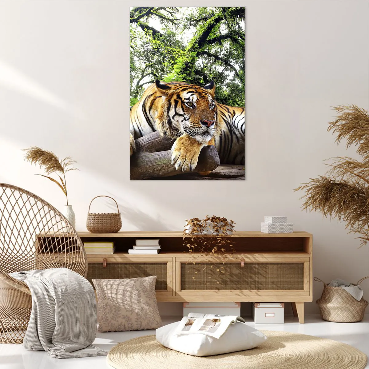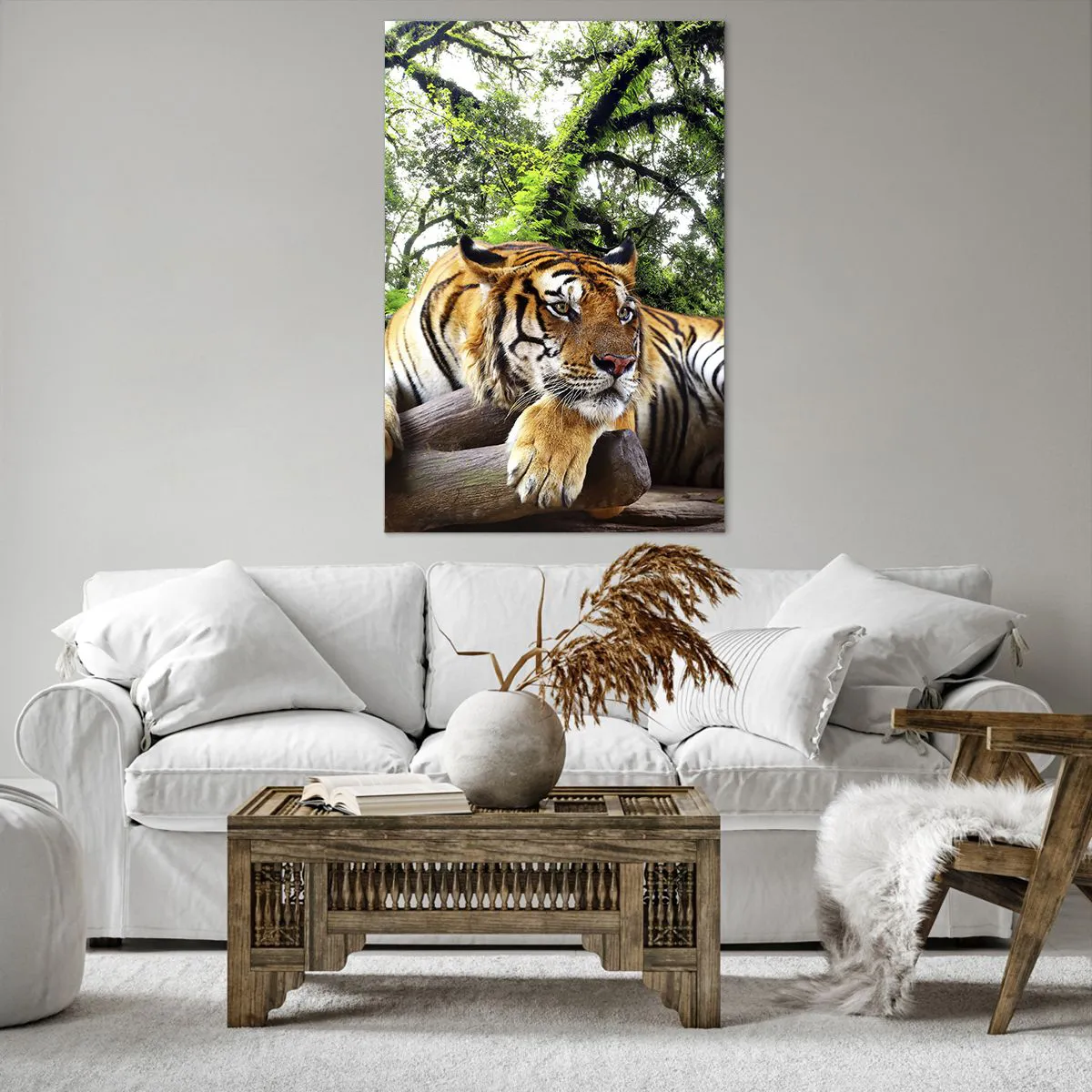 Impression sur toile - Image sur toile - Un tigre se reposant dans une forêt tropicale - 80x120cm - Cordialement - Décoration murale moderne pour le salon et la chambre ARTTOR