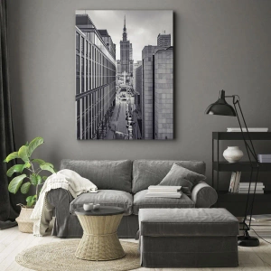 Impression sur toile - Image sur toile - Panorama de Varsovie avec vue sur le Palais de la Culture et les bâtiments environnants - 50x70cm - Vallée de Varsovie - Décoration murale moderne pour le salon et la chambre ARTTOR