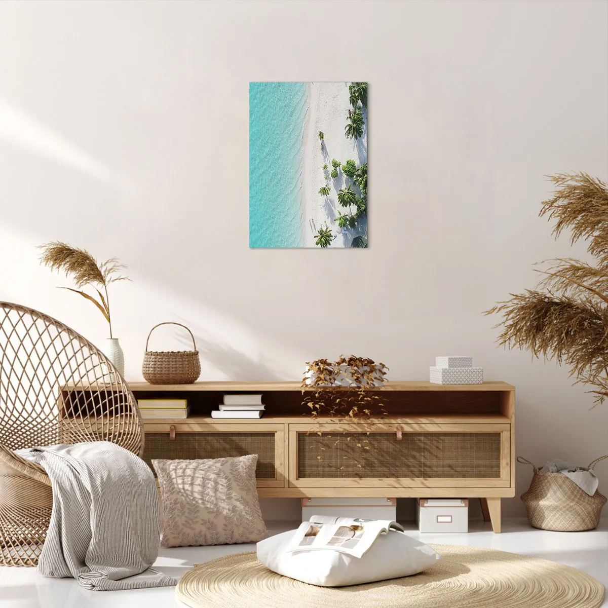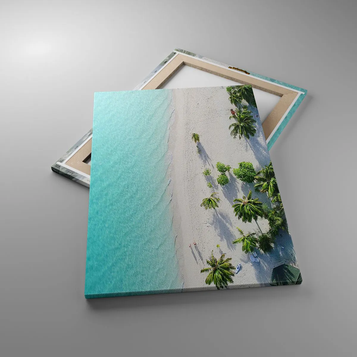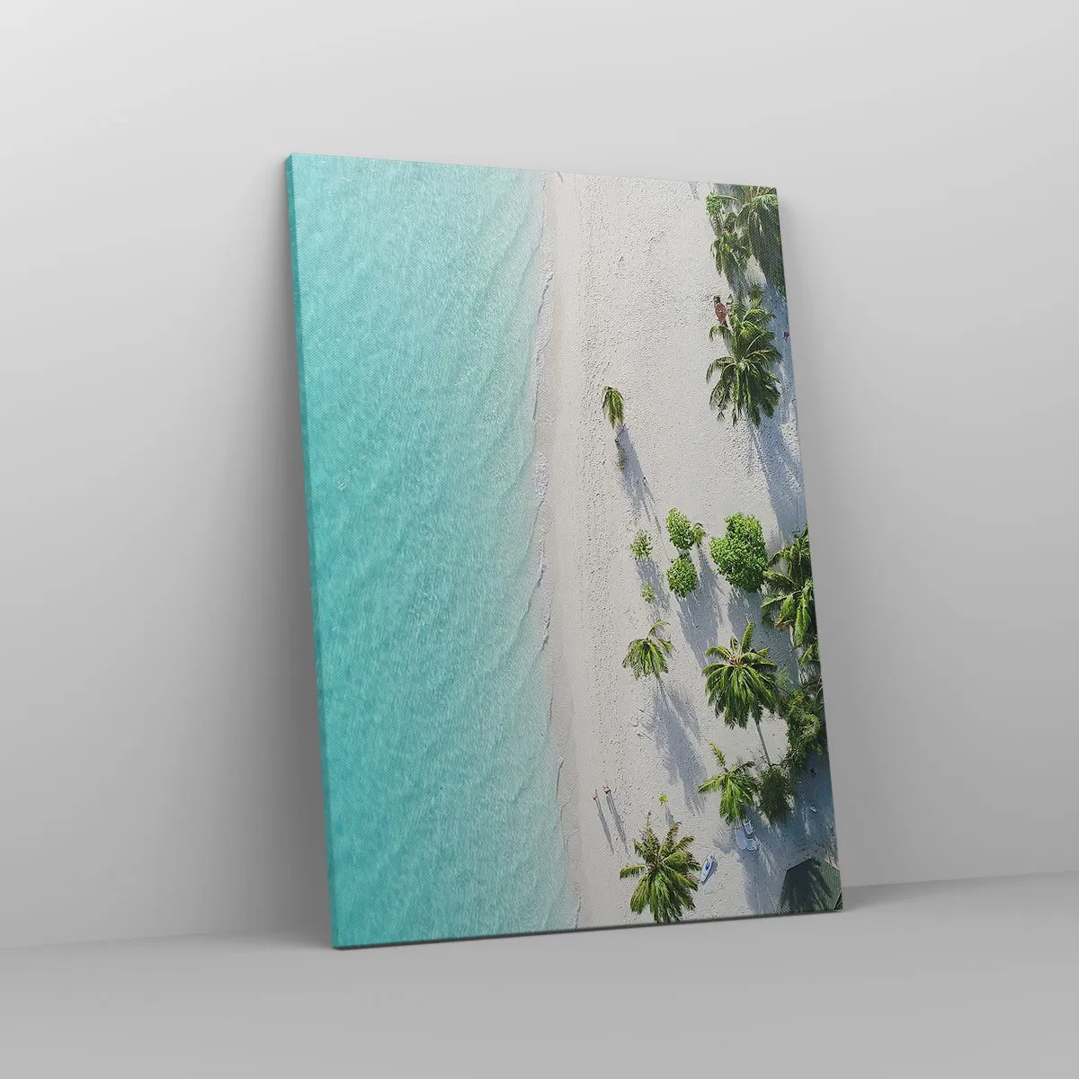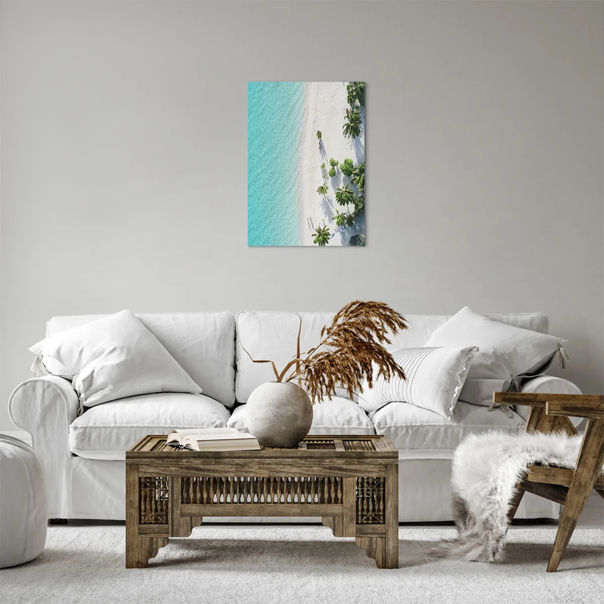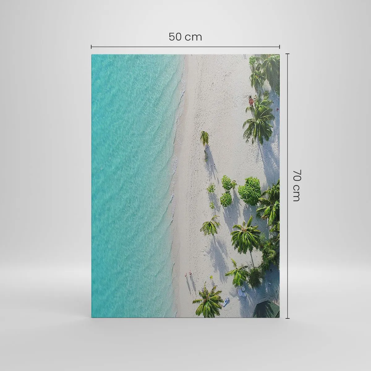Impression sur toile - Image sur toile - Vue plongeante sur une plage tropicale avec de l'eau turquoise et des palmiers - 50x70cm - Vacances au paradis - Décoration murale moderne pour le salon et la chambre ARTTOR