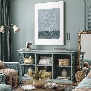 Impression sur toile - Image sur toile - Une peinture minimaliste dans des tons de bleu avec des pois - 50x70cm - Évolution de bleus - Décoration murale moderne pour le salon et la chambre ARTTOR