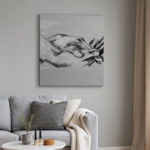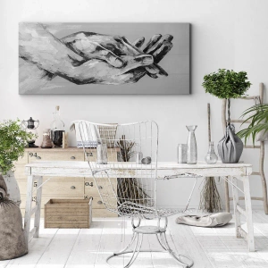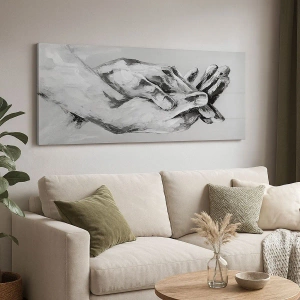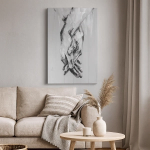 Impression sur toile - Image sur toile - Une composition en noir et blanc de deux mains jointes sur un fond clair. - 70x100cm - Début... - Décoration murale moderne pour le salon et la chambre ARTTOR