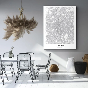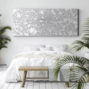 Impression sur toile - Image sur toile - Un plan de ville minimaliste en nuances de gris - 50x70cm - Carte du labyrinthe londonien - Décoration murale moderne pour le salon et la chambre ARTTOR