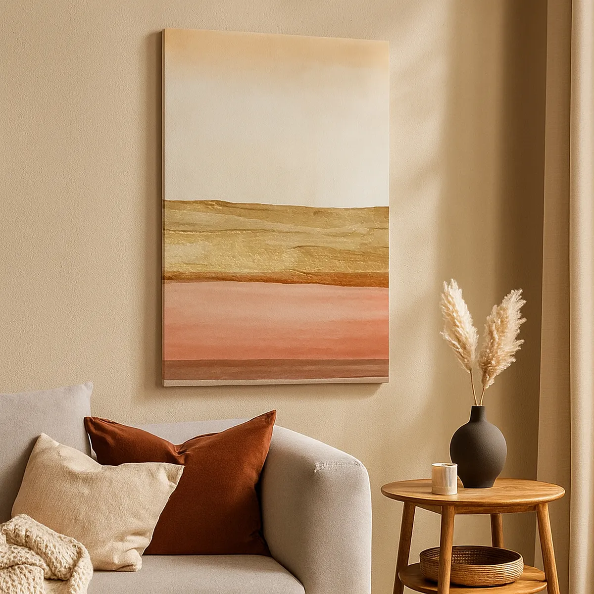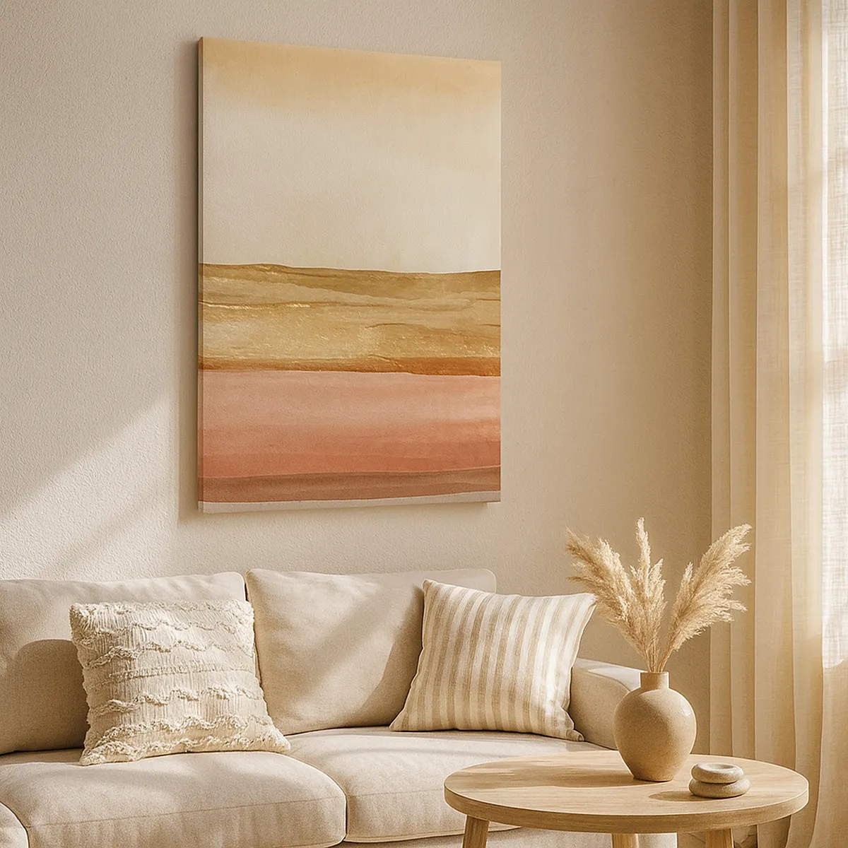 Impression sur toile - Image sur toile - Rayures abstraites dans les tons beige, or et rose sur toile - 80x120cm - Composition verticale - Décoration murale moderne pour le salon et la chambre ARTTOR