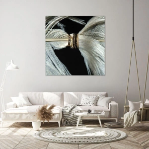 Impression sur toile - Image sur toile - Une plume blanche avec deux anneaux d'or sur fond noir - 70x100cm - ... et je ne te laisserai pas ... - Décoration murale moderne pour le salon et la chambre ARTTOR
