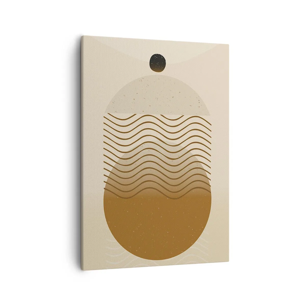 Impression sur toile - Image sur toile - Abstraction géométrique avec des cercles et des lignes ondulées aux couleurs chaudes. - 50x70cm - Sur l'origine des figures géométriques - Décoration murale moderne pour le salon et la chambre ARTTOR