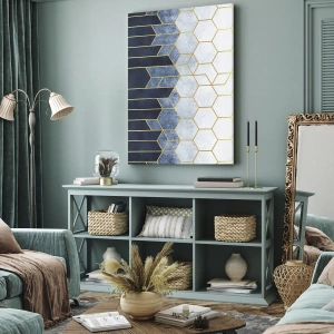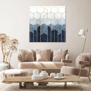 Impression sur toile - Image sur toile - Motif géométrique dans les tons or et bleu marine - 50x70cm - Composition en rythme syncopé - Décoration murale moderne pour le salon et la chambre ARTTOR