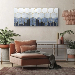 • Ce tableau présente un motif géométrique hexagonal dans un cadre doré sur un fond dégradé allant du blanc au bleu marine. Idéal pour les intérieurs modernes, minimalistes et scandinaves, il souligne l'élégance et le style de la pièce.