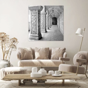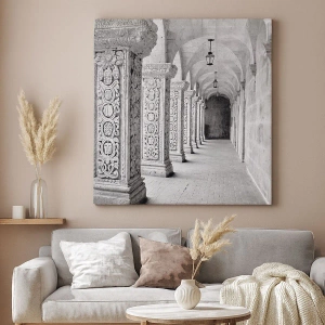 Ce tableau a été réalisé par ARTTOR, garantissant une qualité et une durabilité optimales. Cette toile horizontale de 70 x 50 cm s'intègre facilement dans une variété de styles d'intérieur, tant pour la maison que pour le travail. Les détails des colonnes et les subtiles transitions de tons font de ce tableau une véritable œuvre d'art murale.