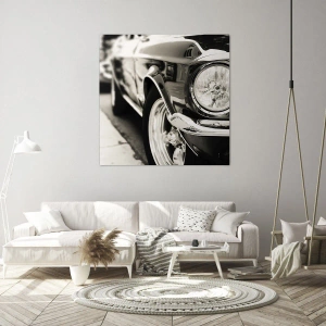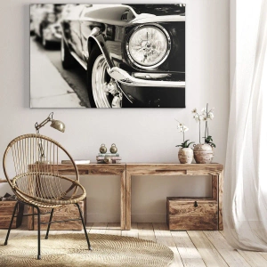 Impression sur toile - Image sur toile - Une voiture classique emblématique en noir et blanc élégant - 70x100cm - Brillance permanente - Décoration murale moderne pour le salon et la chambre ARTTOR
