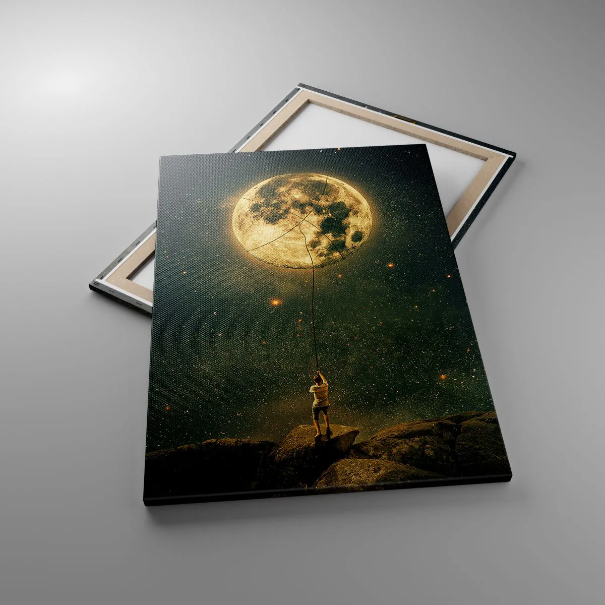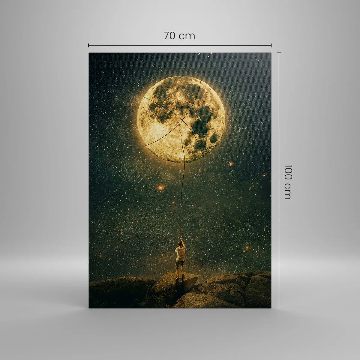 Impression sur toile - Image sur toile - L'homme avec la lune contre le ciel étoilé - 70x100cm - Celui qui a volé la lune - Décoration murale moderne pour le salon et la chambre ARTTOR