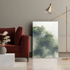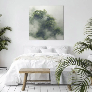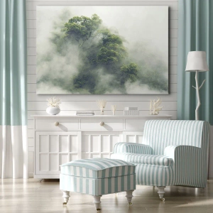 Impression sur toile - Image sur toile - Arbres verts dans un épais brouillard sur fond naturel - 100x70cm - Enveloppé de brouillard - Décoration murale moderne pour le salon et la chambre ARTTOR