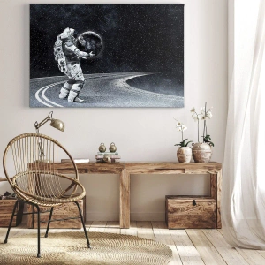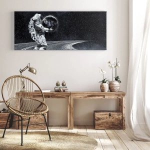 Impression sur toile - Image sur toile - Astronaute avec la Terre contre le ciel étoilé - 100x70cm - Sur la Voie Lactée - Décoration murale moderne pour le salon et la chambre ARTTOR
