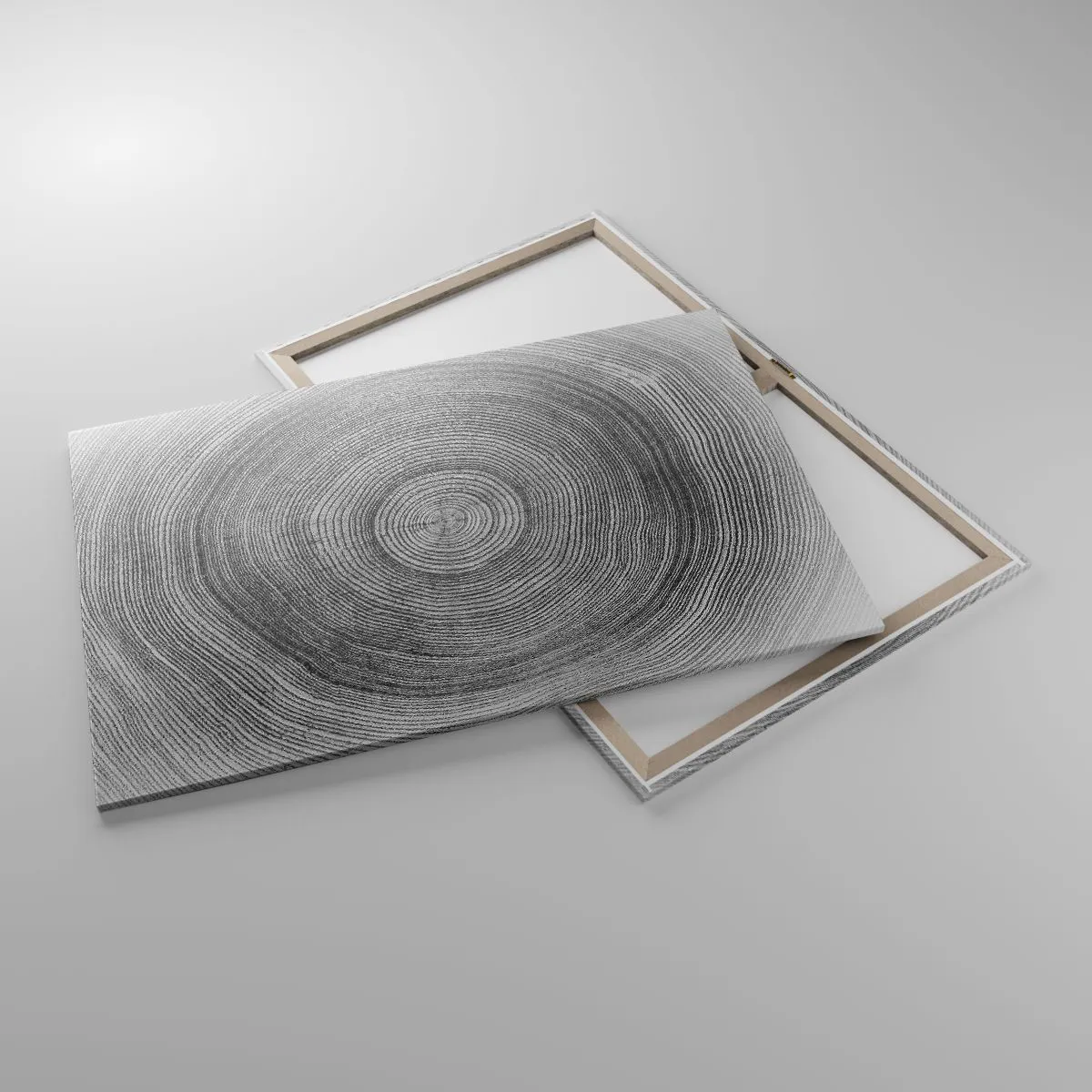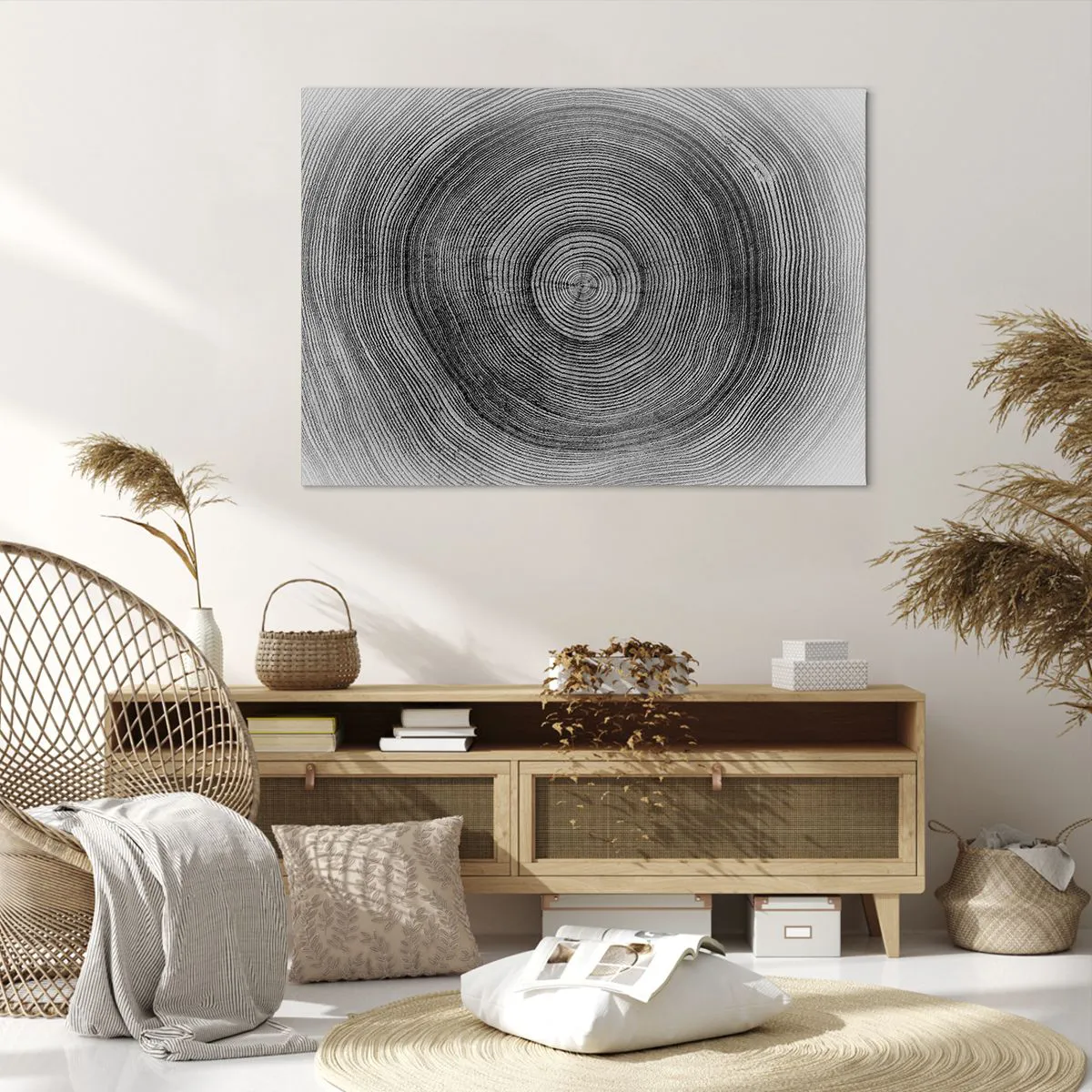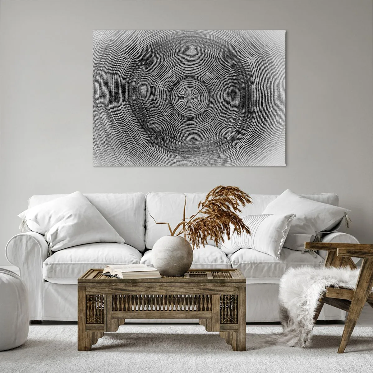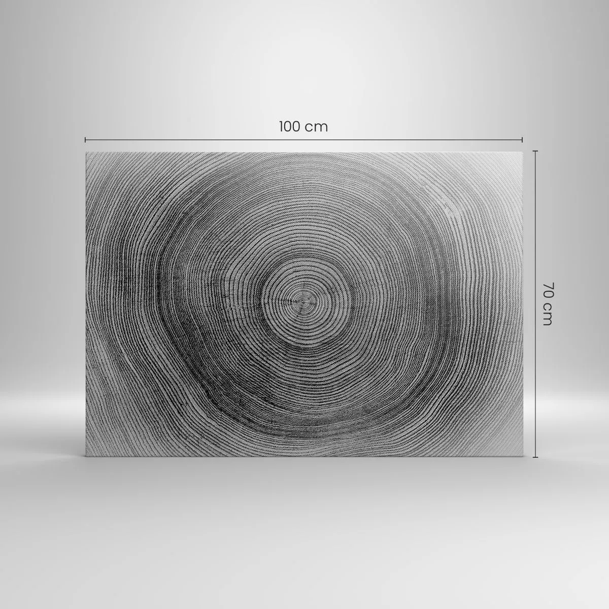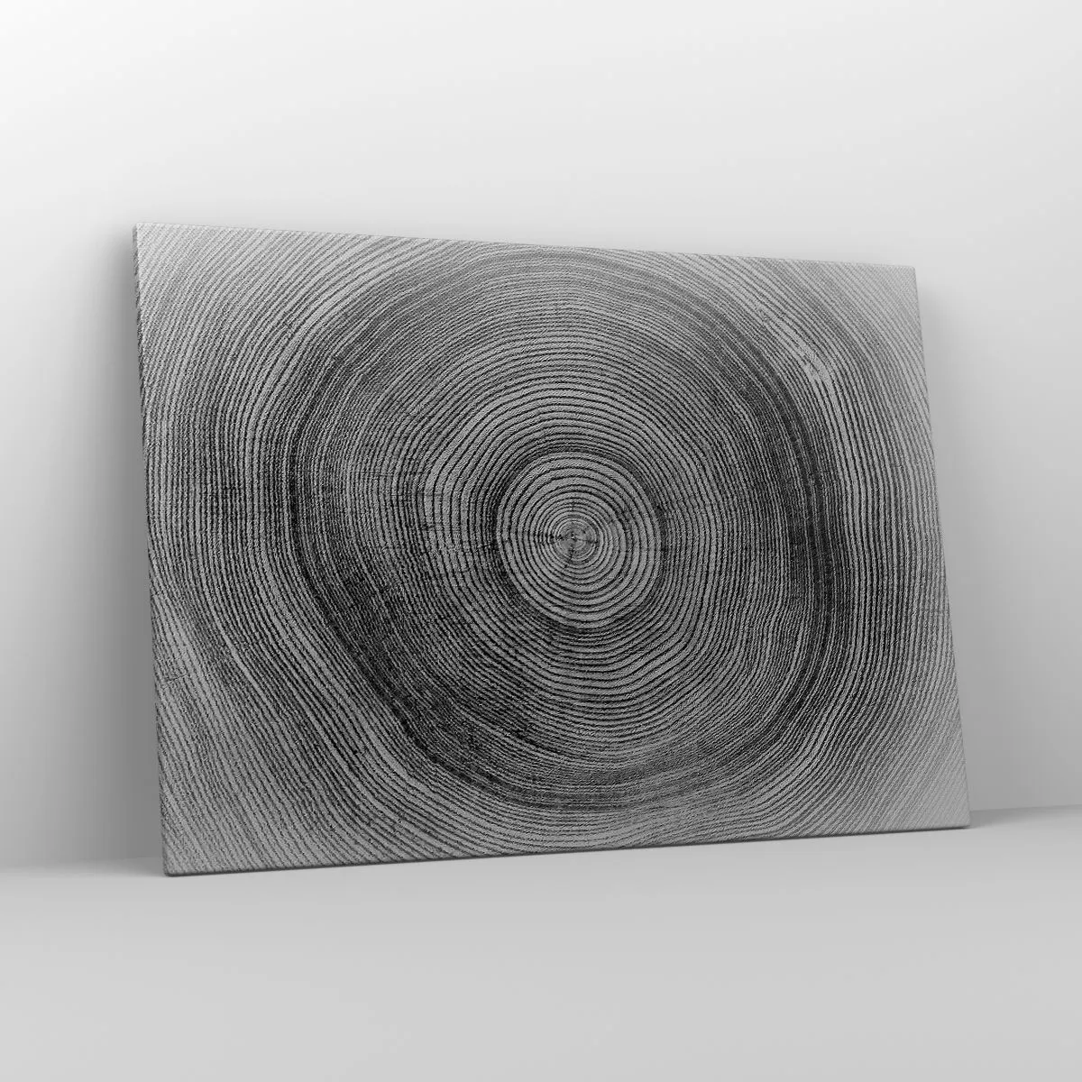 Impression sur toile - Image sur toile - Motif de cernes d'arbre noir et blanc montrant une coupe transversale du tronc - 100x70cm - Signe du temps - Décoration murale moderne pour le salon et la chambre ARTTOR