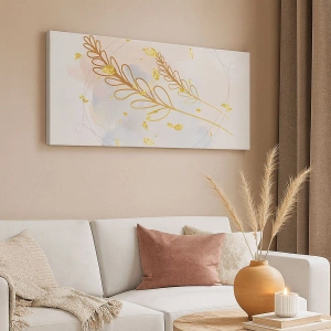 Impression sur toile - Image sur toile - Un délicat motif de feuille dorée sur un fond pastel avec des détails aquarelles. - 80x120cm - Explosion d'or - Décoration murale moderne pour le salon et la chambre ARTTOR