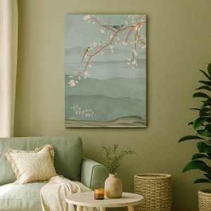 Le tableau « Printemps, oh, c'est toi » est une composition délicate et pittoresque qui apporte la fraîcheur et la joie d'un paysage printanier à votre intérieur. Il représente une branche d'arbre en fleurs sur laquelle se posent des oiseaux, sur fond de collines verdoyantes. Les couleurs pastel et la légèreté du motif créent une atmosphère de paix et d'harmonie qui ravira tous les amoureux de la nature.