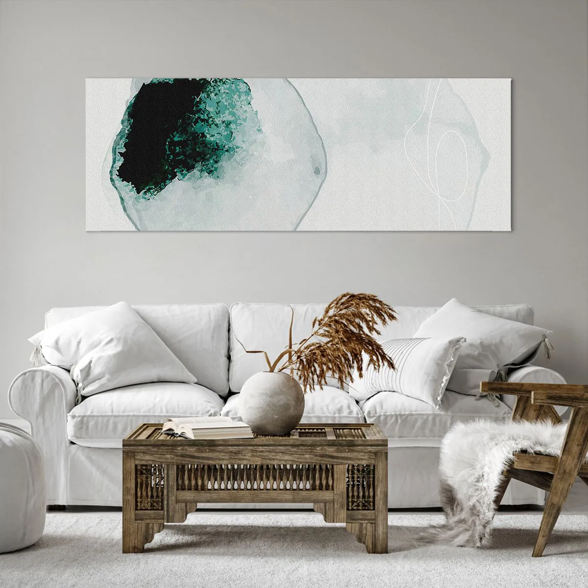 Impression sur toile - Image sur toile - Goutte d'eau abstraite avec des nuances de vert et de noir - 140x50cm - Dans une goutte d'eau - Décoration murale moderne pour le salon et la chambre ARTTOR