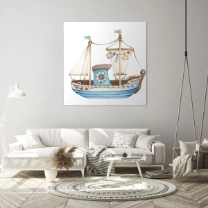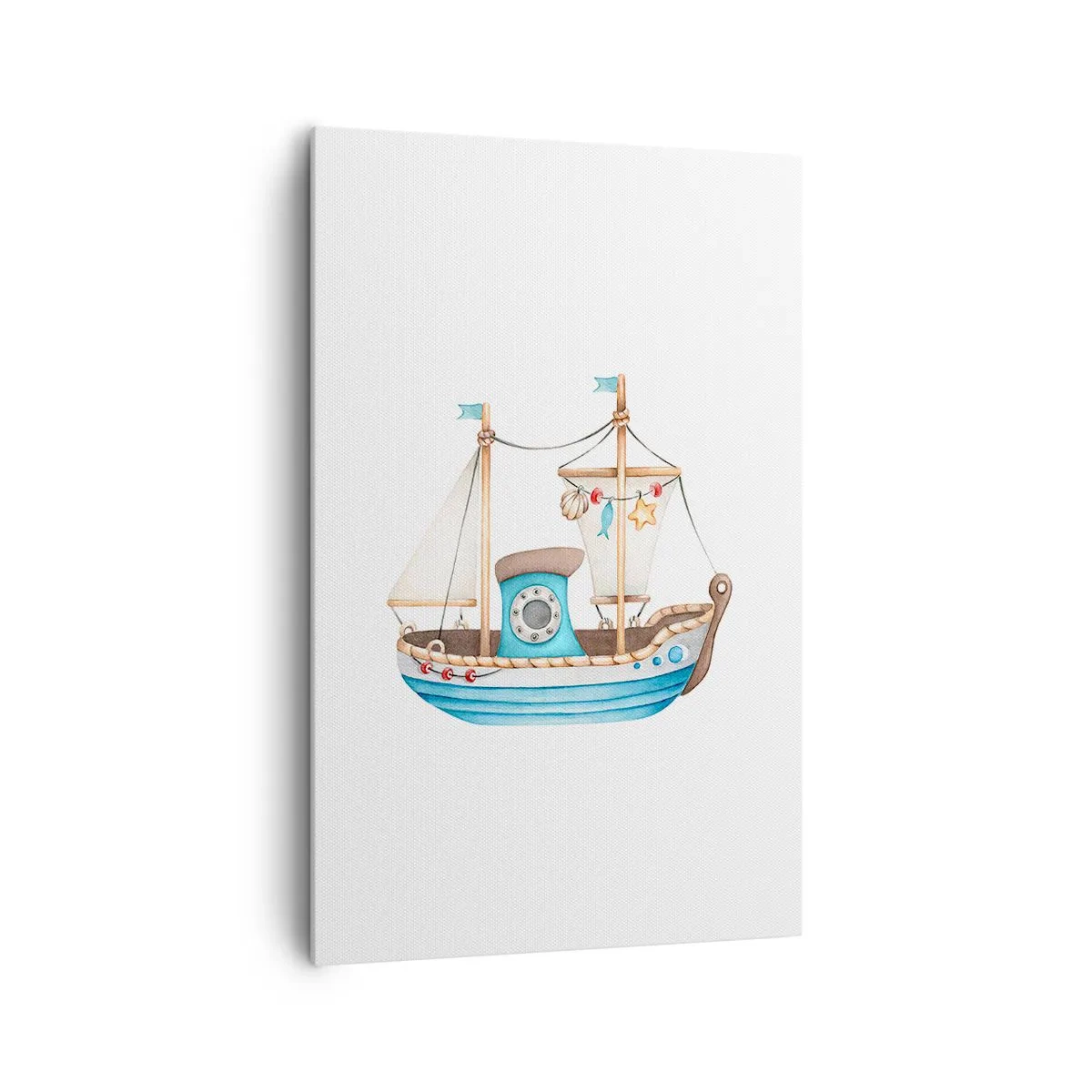 Impression sur toile - Image sur toile - Illustration d'un navire aux couleurs pastel sur fond blanc - 80x120cm - Ohé, l'aventure ! - Décoration murale moderne pour le salon et la chambre ARTTOR