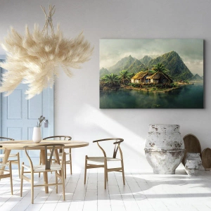 Impression sur toile - Image sur toile - Une île tropicale avec des palmiers et des montagnes en arrière-plan - 50x70cm - Paradis tropical - Décoration murale moderne pour le salon et la chambre ARTTOR