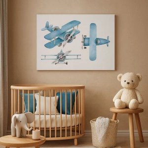 L'impression sur toile Born to Win est une décoration unique représentant des avions bleus au style rétro. Ses couleurs subtiles et son design minimaliste en font un ajout parfait à une chambre d'enfant et aux espaces modernes.