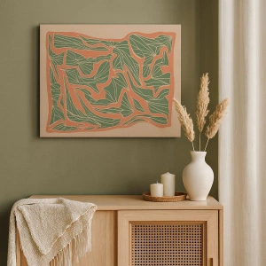 Impression sur toile - Image sur toile - Un motif végétal dans les tons de vert et d'orange - 70x50cm - La lutte entre le corail et la verdure - Décoration murale moderne pour le salon et la chambre ARTTOR
