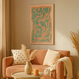 • Ce motif botanique aux tons verts et orange est une décoration élégante qui apporte une touche naturelle et harmonieuse à tout intérieur. Idéal pour un salon ou une chambre.