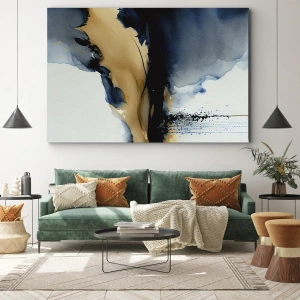 Impression sur toile - Image sur toile - Une composition abstraite dans les tons bleu marine et or - 50x70cm - Derrière le rideau - Décoration murale moderne pour le salon et la chambre ARTTOR