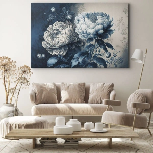Impression sur toile - Image sur toile - Pivoines bleues sur un fond subtil avec un motif délicat - 70x100cm - Paire assortie - Décoration murale moderne pour le salon et la chambre ARTTOR