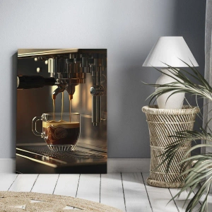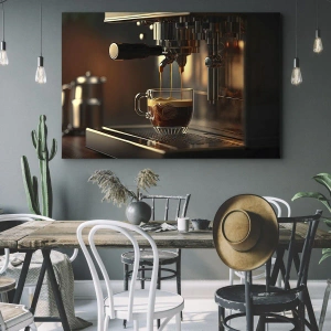 Impression sur toile - Image sur toile - Machine à café avec une tasse d'espresso aromatique - 140x50cm - Un mélange sensuel - Décoration murale moderne pour le salon et la chambre ARTTOR
