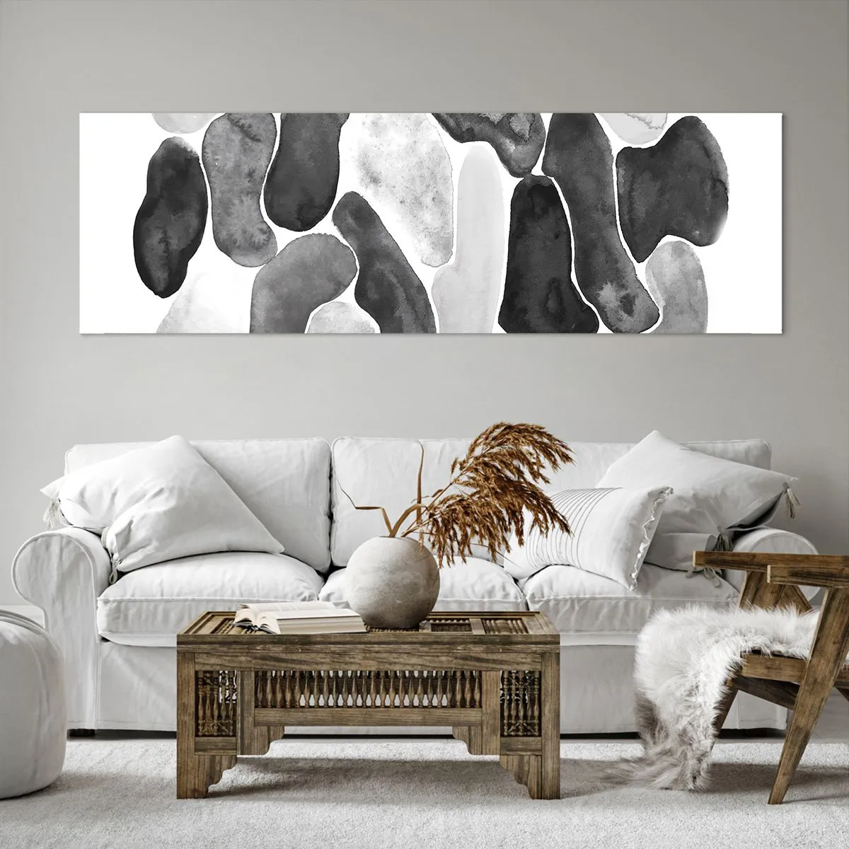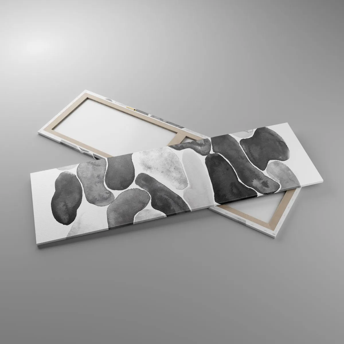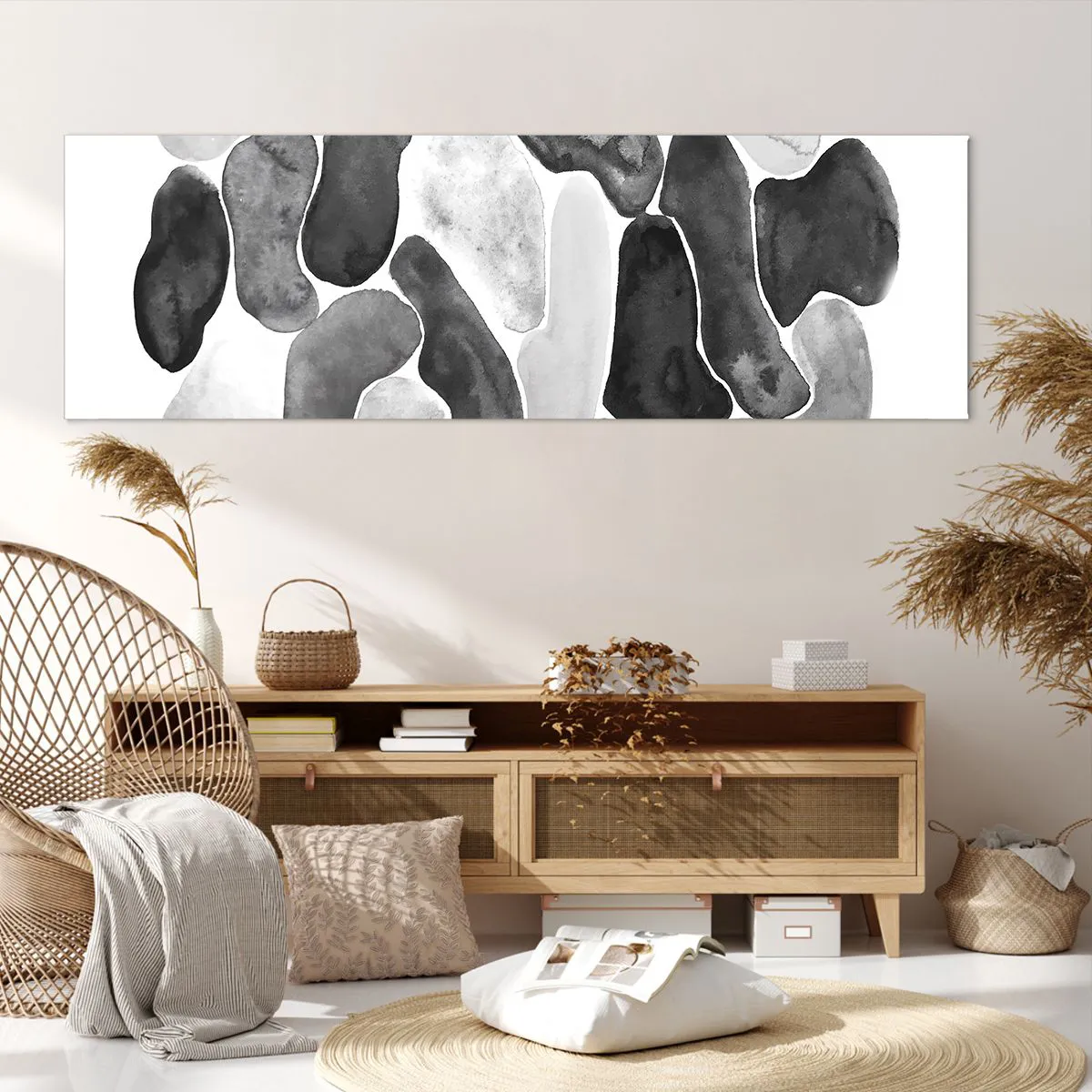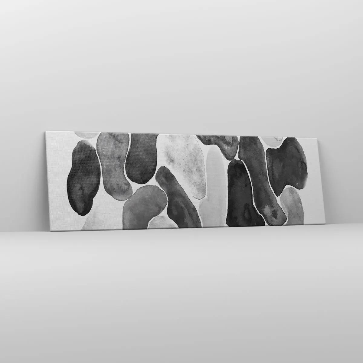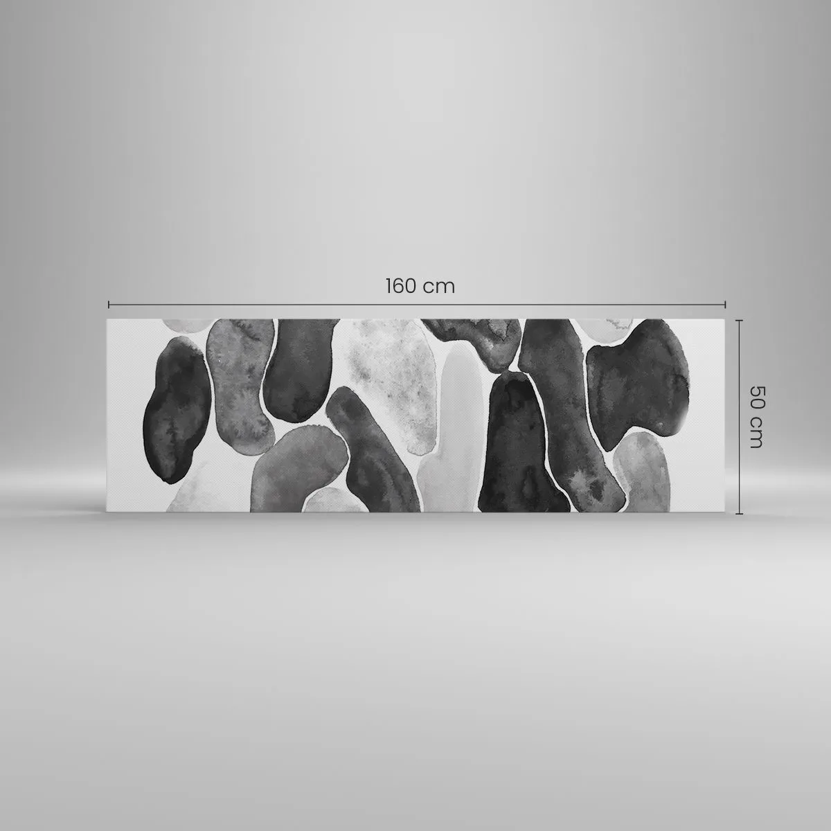 Impression sur toile - Image sur toile - Abstraction en noir et blanc avec des taches irrégulières sur fond blanc - 160x50cm - Abstraction rocheuse - Décoration murale moderne pour le salon et la chambre ARTTOR