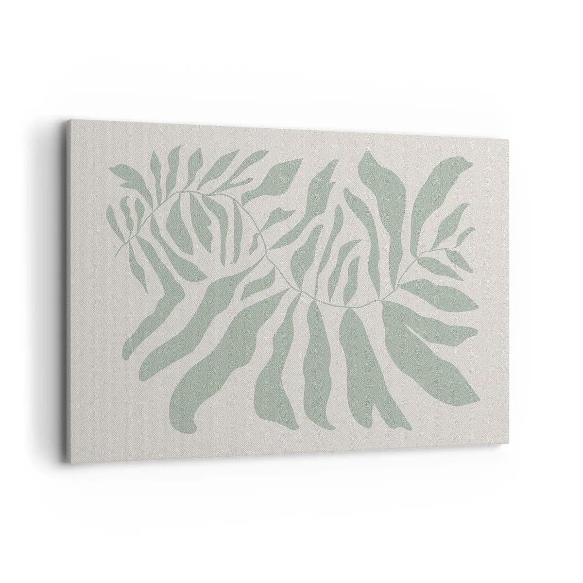Impression sur toile - Image sur toile - Un motif de brindilles délicat avec des feuilles dans une nuance de vert émeraude - 100x70cm - Brindille d'émeraude - Décoration murale moderne pour le salon et la chambre ARTTOR