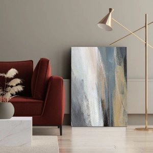 - Cette toile imprimée de 70 x 50 cm représente un paysage abstrait aux tons doux de bleu et de beige. Parfaite pour les intérieurs privilégiant la paix et l'harmonie, elle apporte une touche artistique.