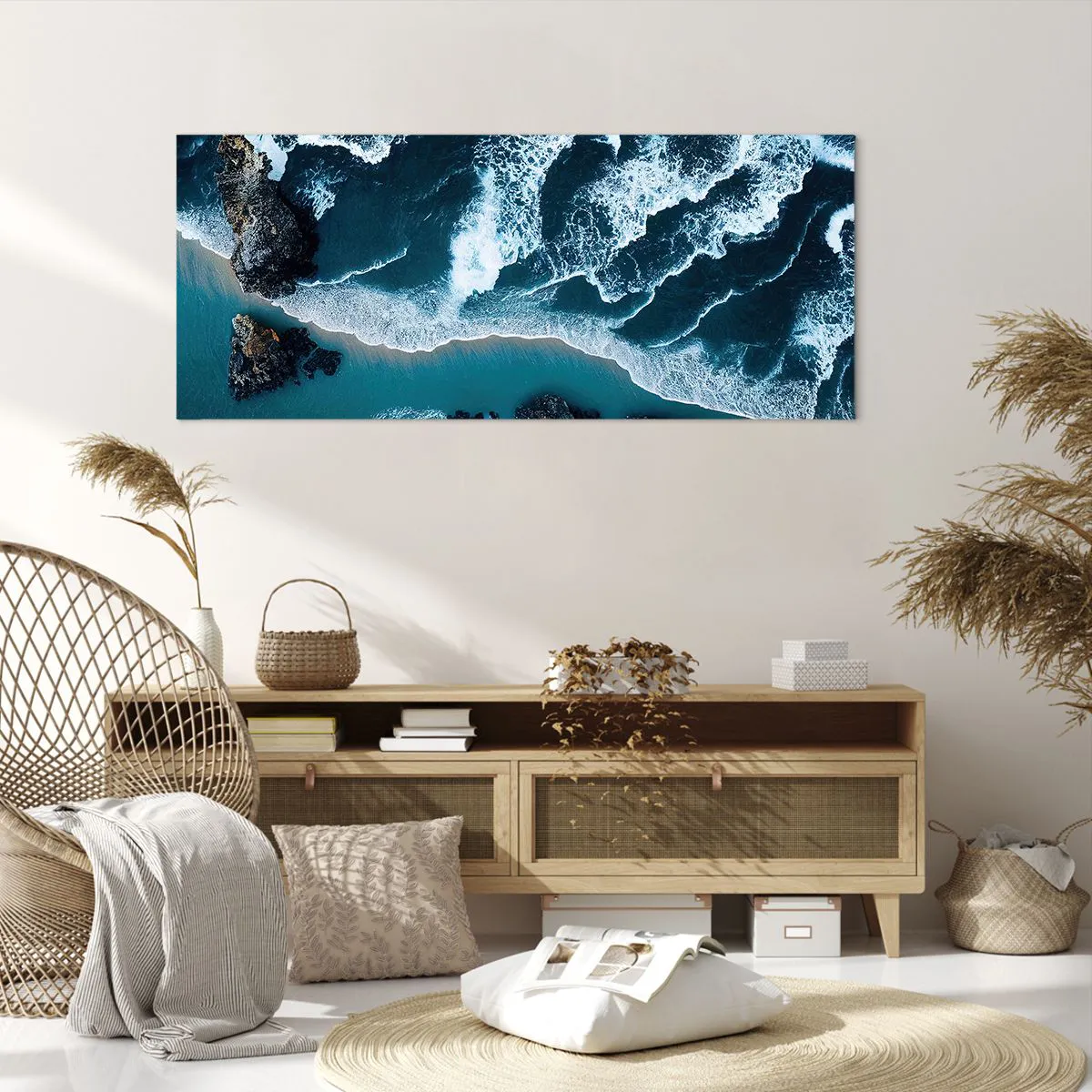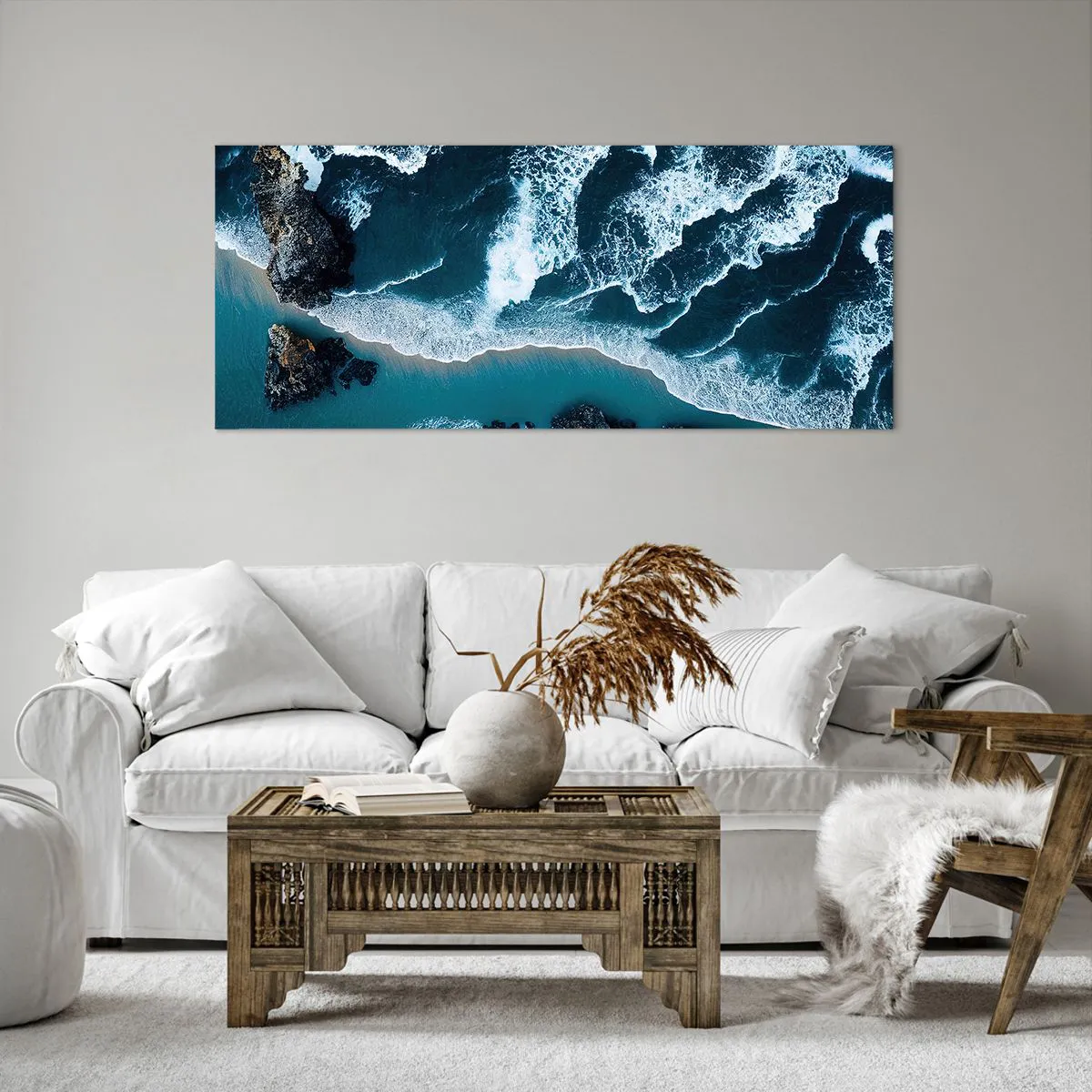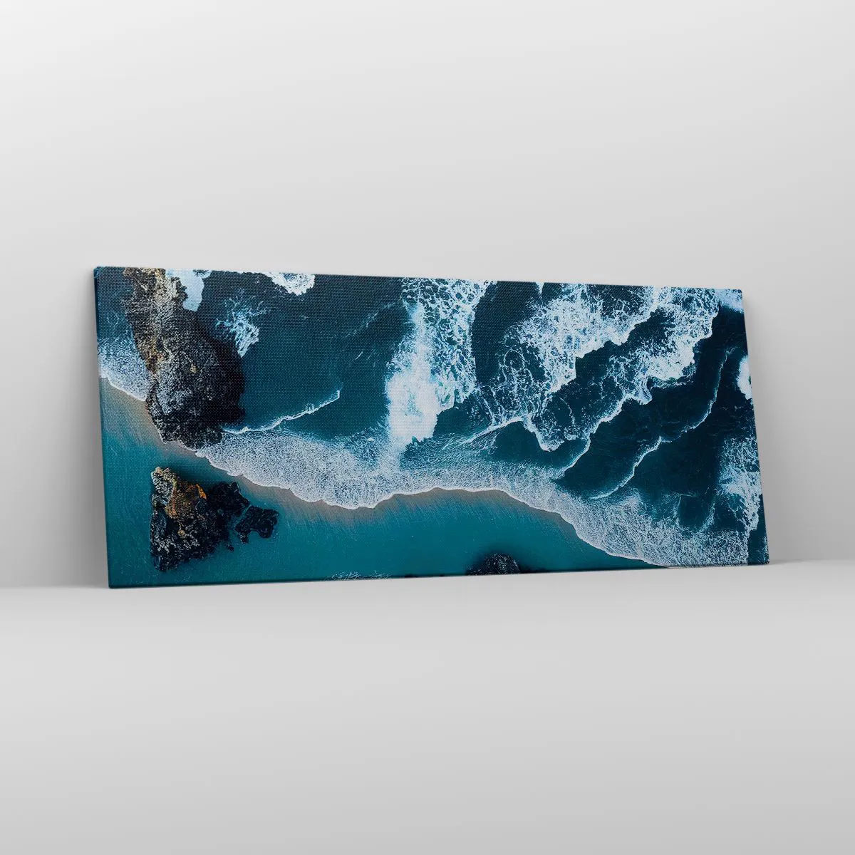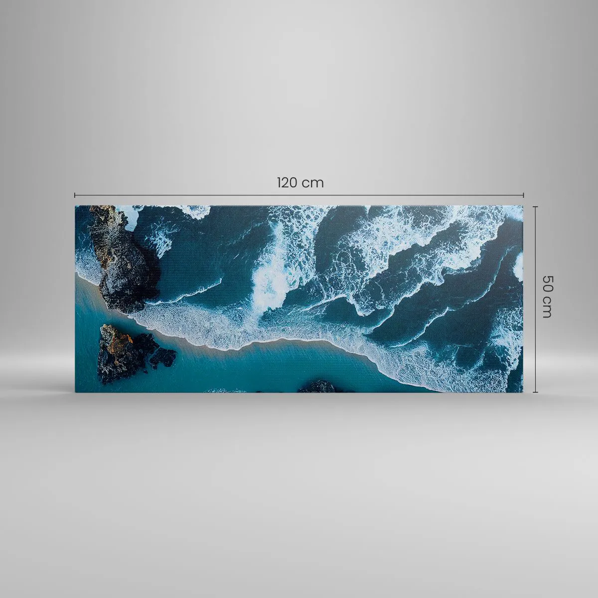 Impression sur toile - Image sur toile - Vue aérienne des vagues s'écrasant sur le rivage - 120x50cm - Enveloppé par les vagues - Décoration murale moderne pour le salon et la chambre ARTTOR