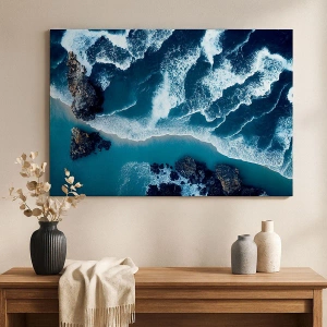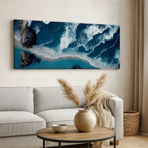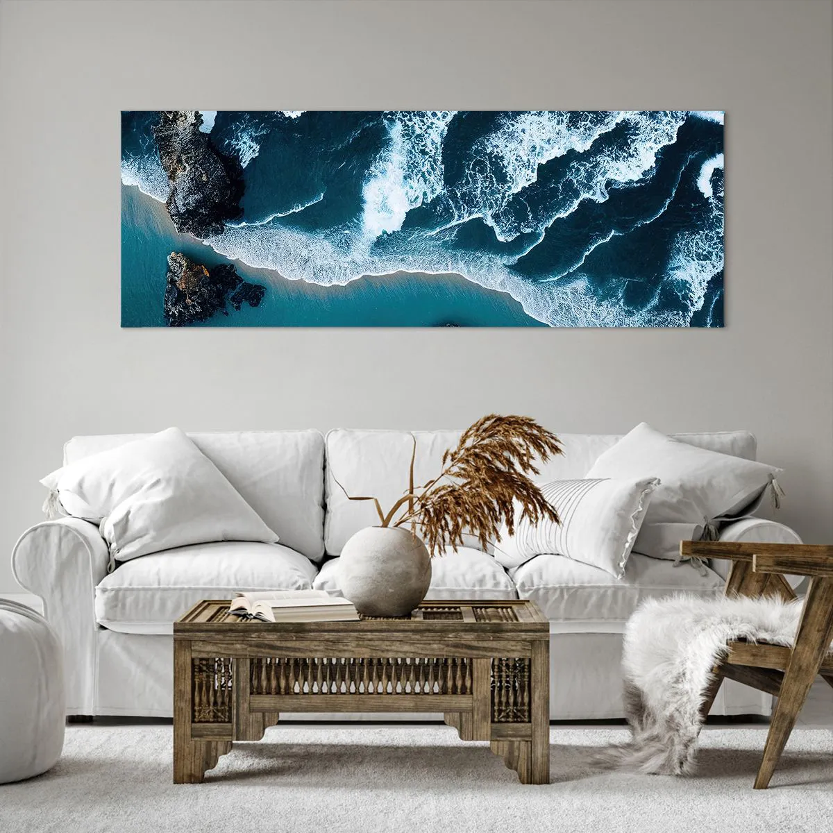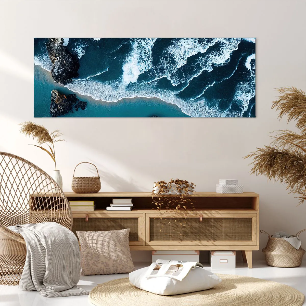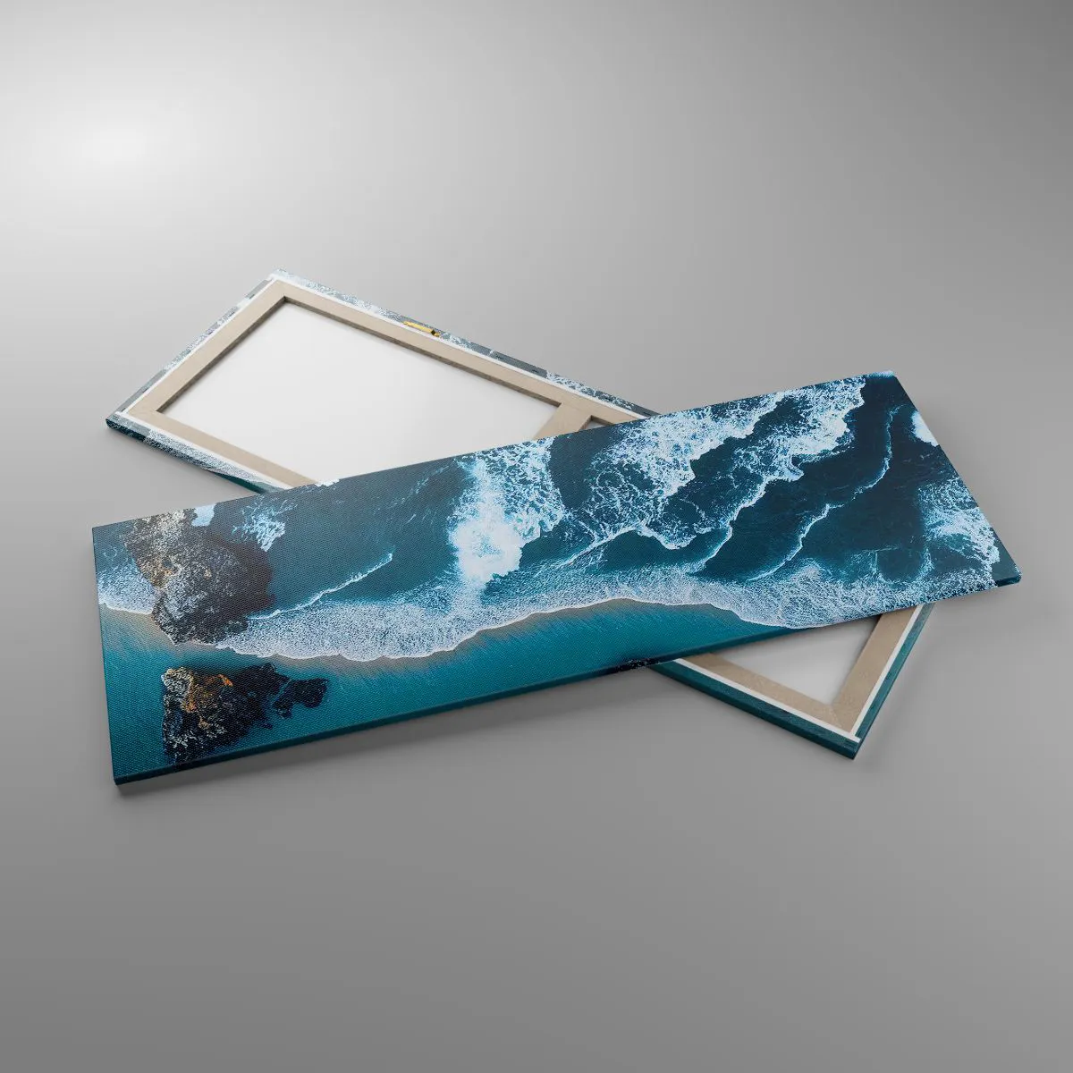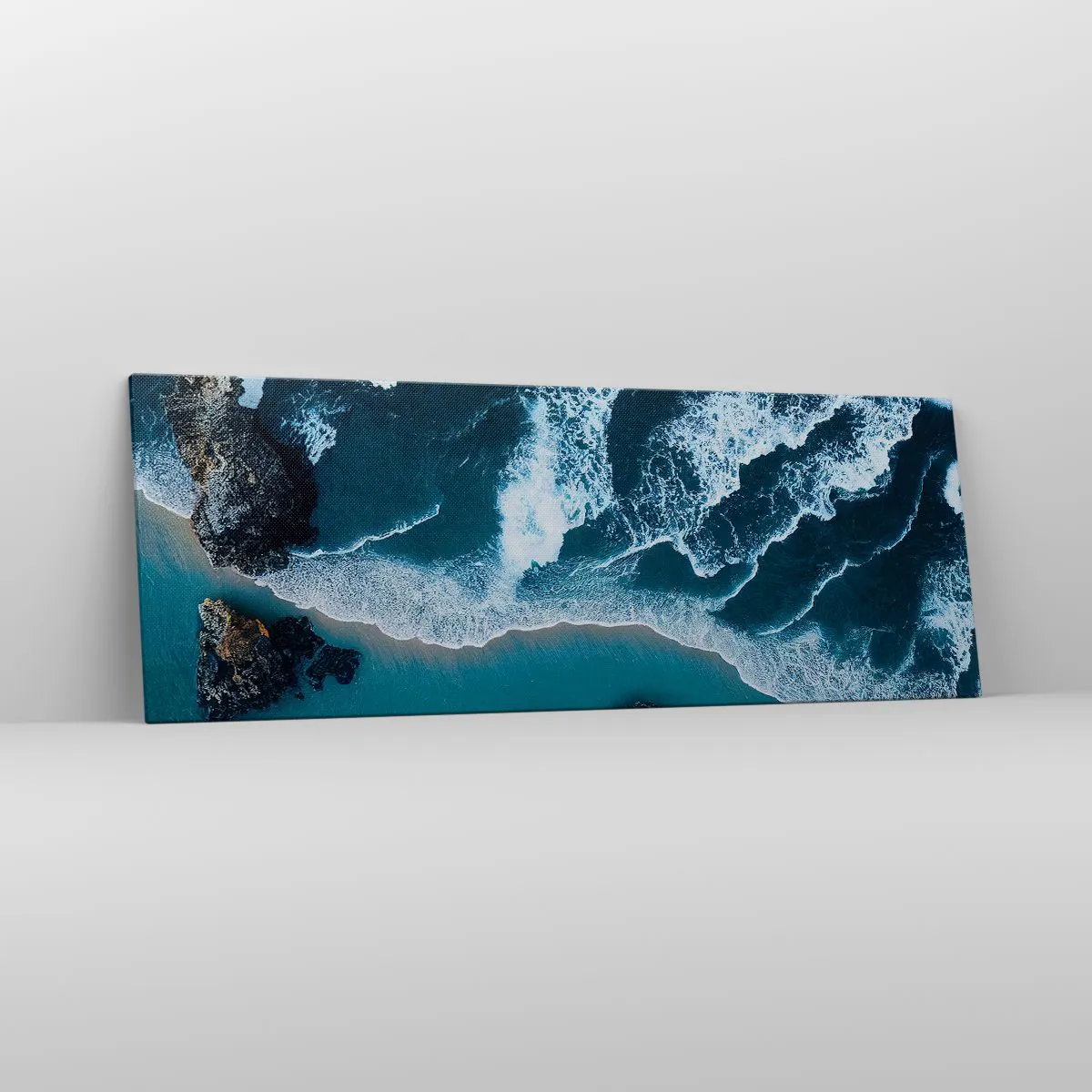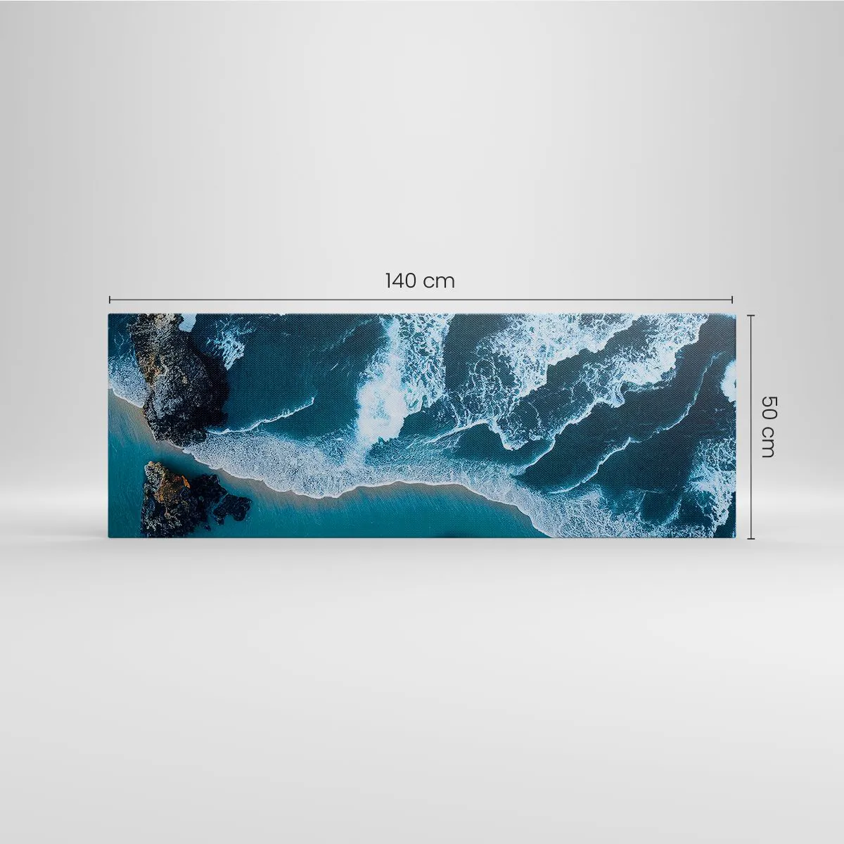 Impression sur toile - Image sur toile - Vue aérienne des vagues s'écrasant sur le rivage - 140x50cm - Enveloppé par les vagues - Décoration murale moderne pour le salon et la chambre ARTTOR