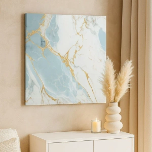 - Un tableau élégant aux motifs marbrés bleus et blancs, sublimés par de délicates veines dorées. Idéal pour les intérieurs modernes et classiques, il apporte élégance et luxe à tout espace.