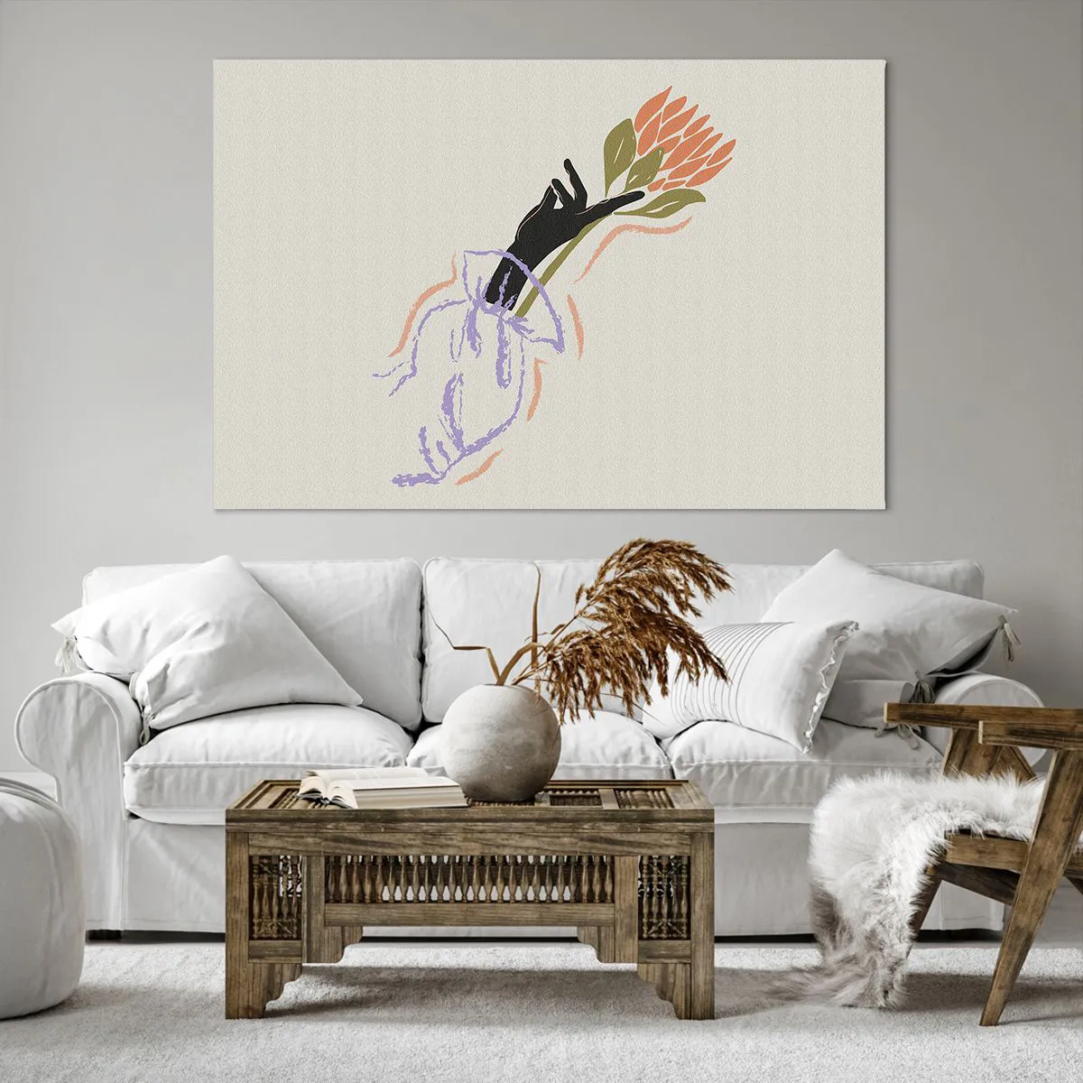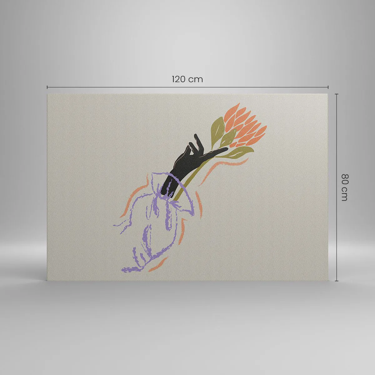 Impression sur toile - Image sur toile - Un bouquet de fleurs minimaliste au style délicat - 120x80cm - Touche fraternelle - Décoration murale moderne pour le salon et la chambre ARTTOR