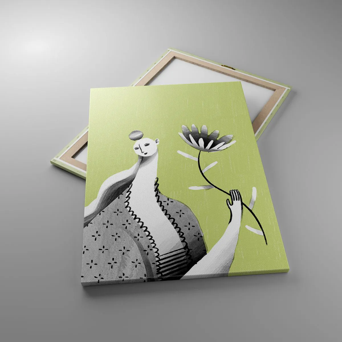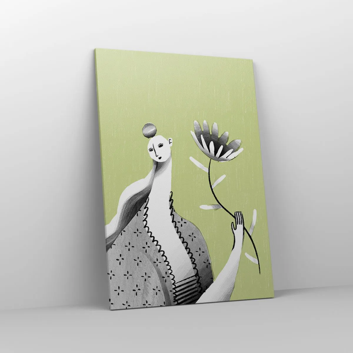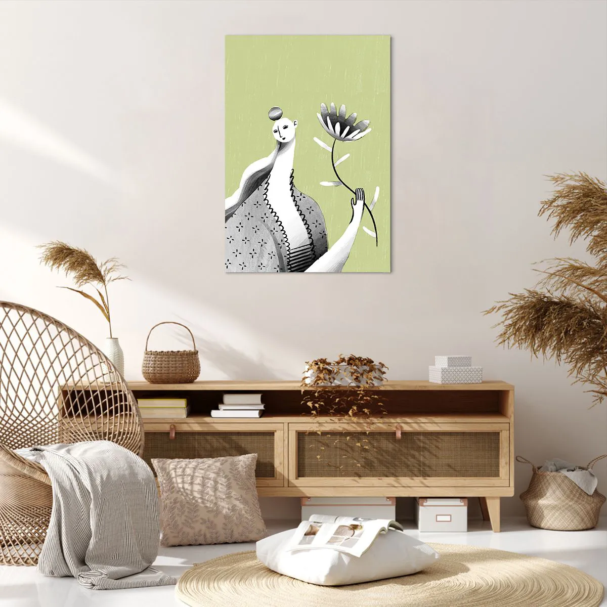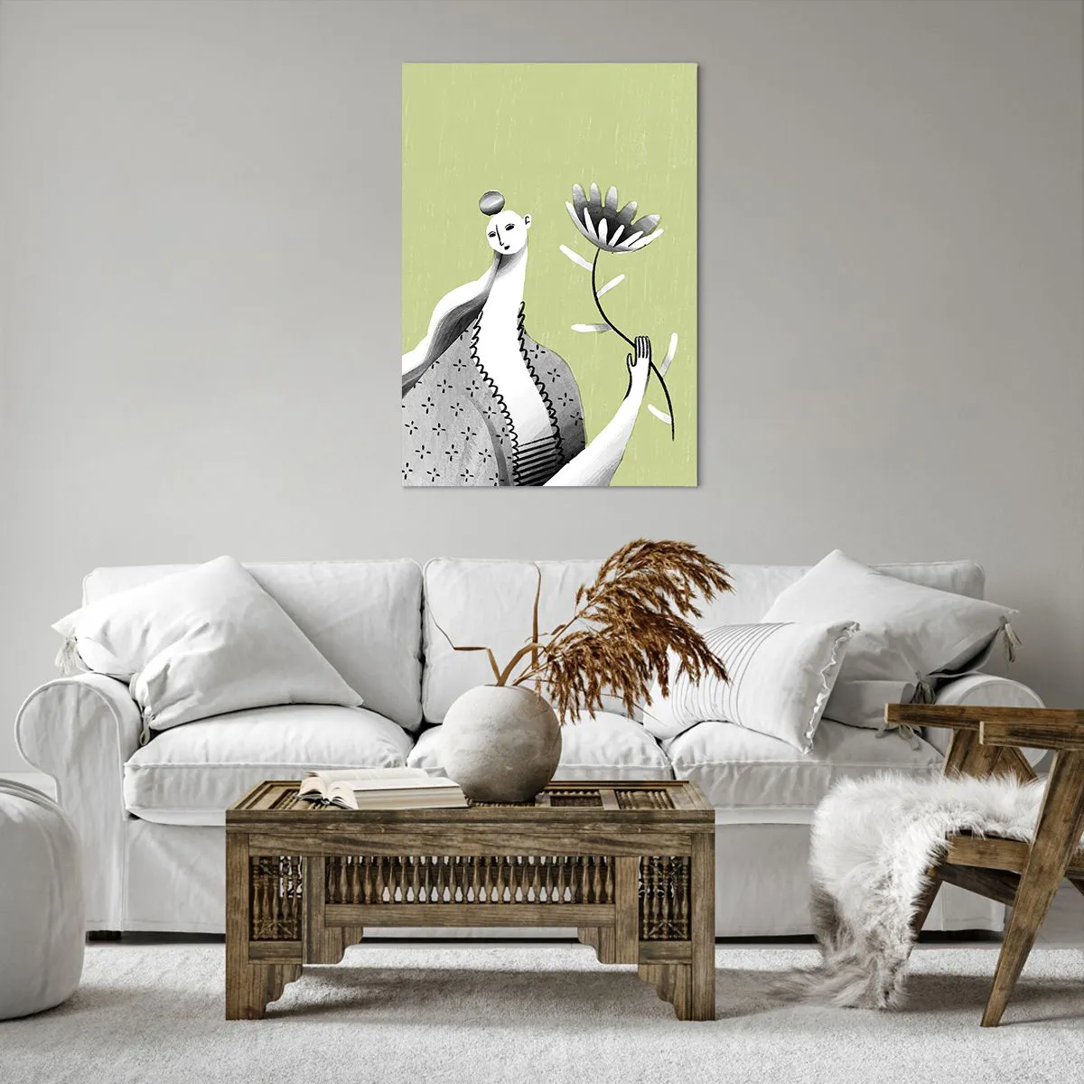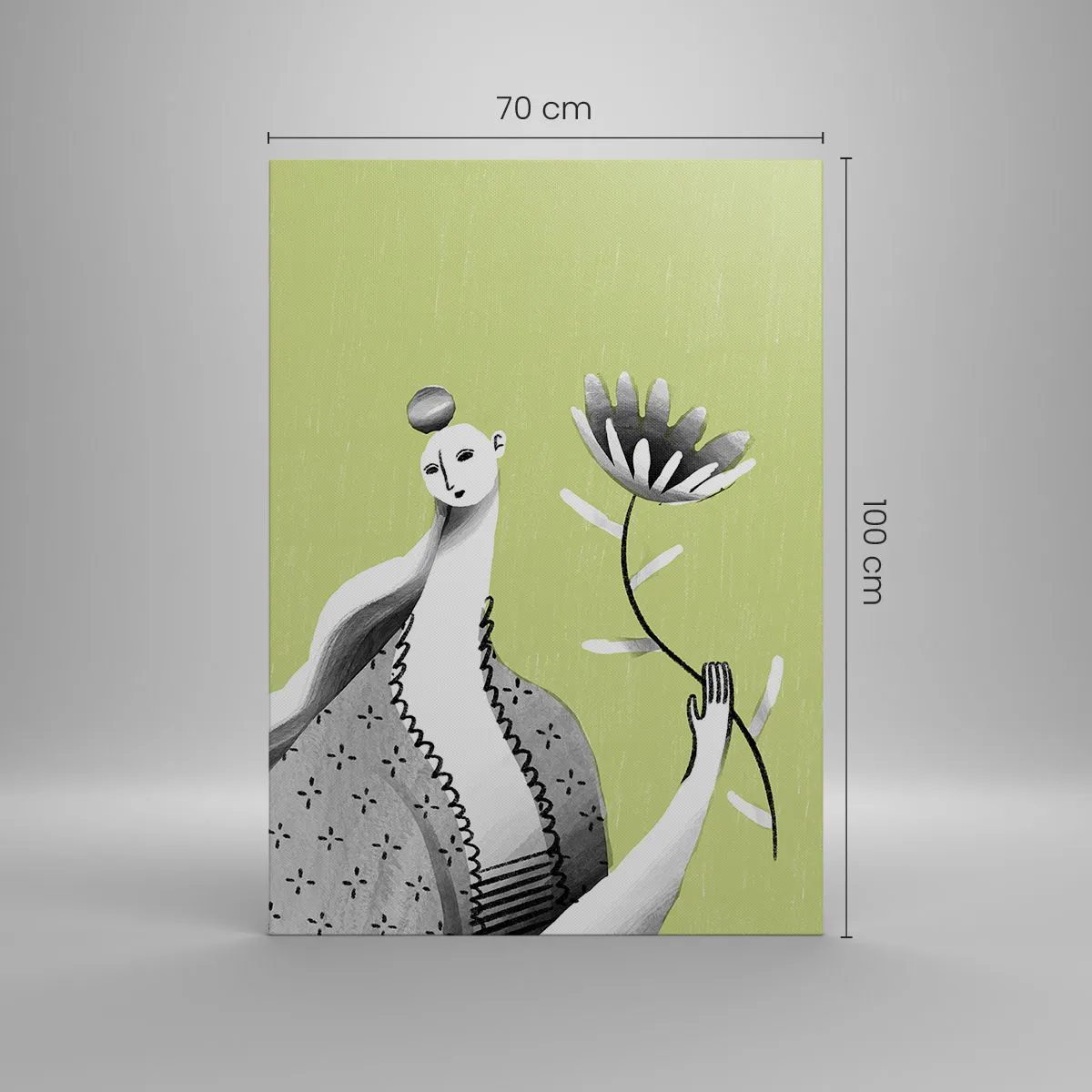 Impression sur toile - Image sur toile - Portrait moderniste – tenant une fleur - 70x100 cm
